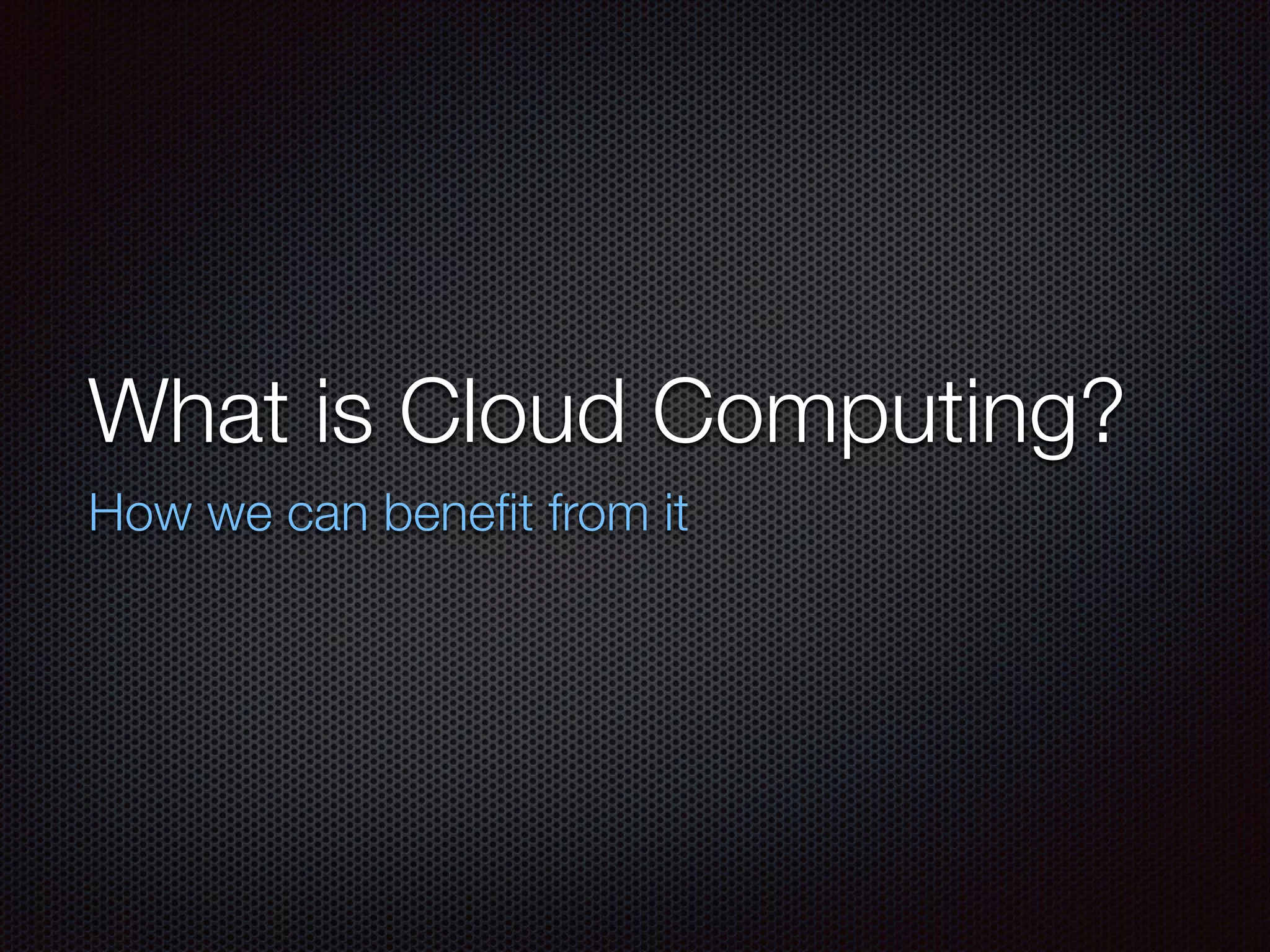 Cloud computing is internet-based computing that connects large groups of remote servers for centralized data storage and access to resources, classified as public, private, or hybrid. It offers benefits such as cost-effectiveness, fast deployment, scalability, global reach, and enhanced safety for virtual assets. The model operates on resource sharing, akin to utilities like electricity, maximizing the efficiency of these resources.