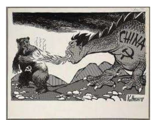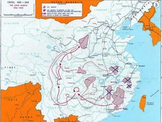 This document discusses the origins and development of Marxism-Leninism and its spread to power in early communist states. It describes how Karl Marx developed communist ideas around class struggle and ownership of production. Vladimir Lenin then led the Bolsheviks Revolution in Russia, establishing the Soviet Union and implementing Marxist-Leninist policies like secret police and executions. Stalin later industrialized the Soviet Union through five-year plans and collectivization. Marxism-Leninism also spread to China where Mao Zedong led the Communist Party of China after a long struggle against the Kuomintang nationalists culminating in the Chinese Civil War.