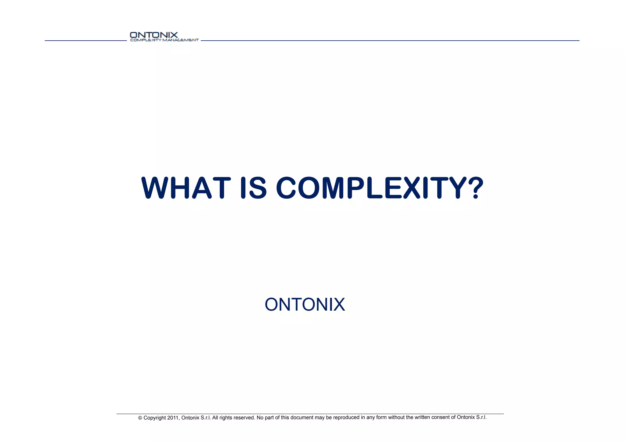 Complexity is defined as having multiple interconnected information sources where there is uncertainty. The more sources there are, the more links between them, and the greater the uncertainty, the more complex a system is and the harder it is to understand and manage. Critical complexity occurs when there are so many links and so much uncertainty that a system cannot be comprehended or controlled.