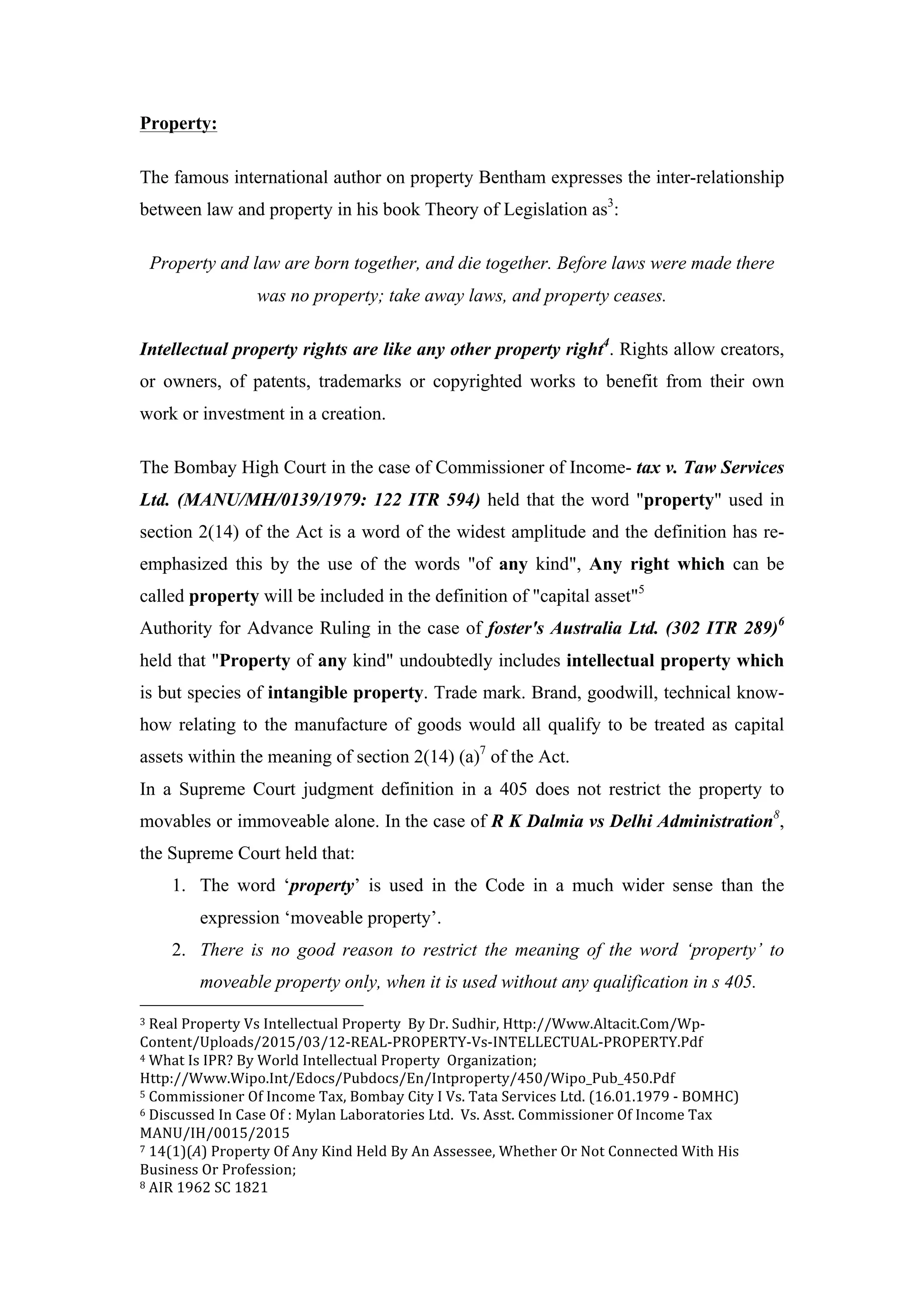The document outlines the legal remedies available in India for the exploitation of intellectual property rights (IPR), which are protected under various statutes including the Trade Marks Act, Copyright Act, Patents Act, and Designs Act. It emphasizes that IPR can be subject to both civil and criminal penalties, including provisions for criminal breach of trust under the Indian Penal Code. Additionally, it discusses case law that establishes the definition of property to include intellectual property and the legal implications of misappropriation and infringement.