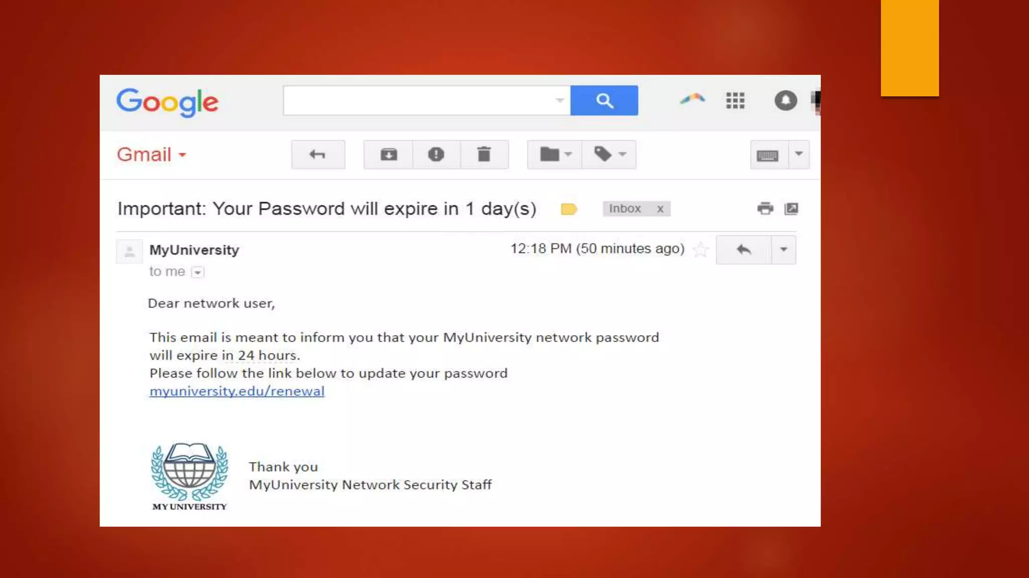 given to go to myuniversity.edu/renewal to renew their password within 24 hours