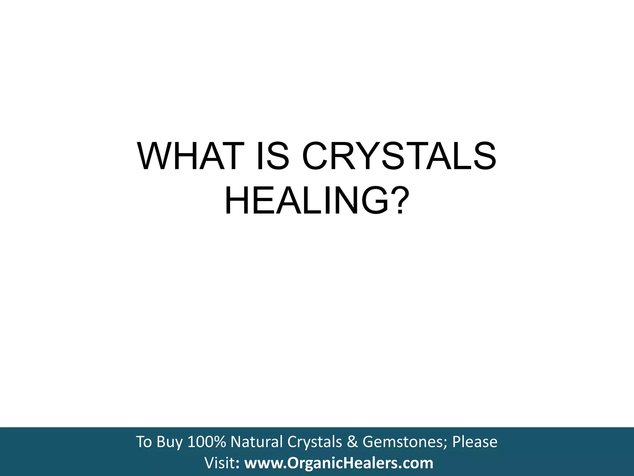 Crystals are mineral deposits that form under immense pressure over millions of years, giving them precise atomic structures. Historically, royalty and religious figures used crystals for their symbolic and therapeutic properties. Modern science shows that crystals have vibrational energy properties and can be used to absorb, amplify, and radiate electromagnetic signals. Quantum physics also demonstrates that all matter is condensed vibrational energy. Crystals can thus be viewed as energy stores that vibrate at precise frequencies, and which may be able to transfer healing energy to the human energy field through sympathetic resonance.