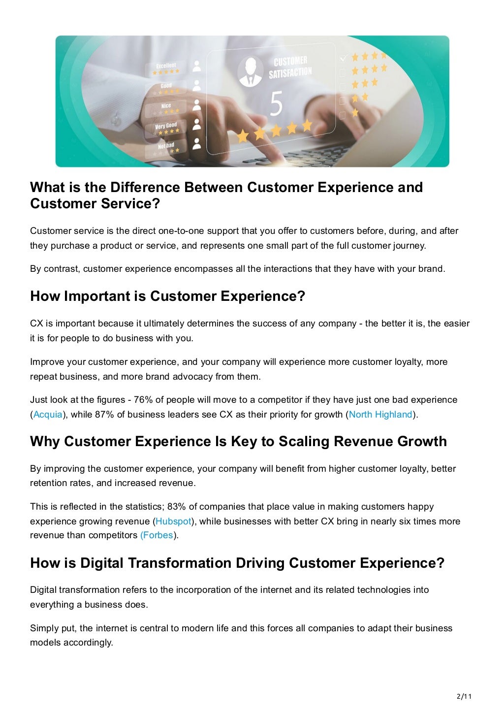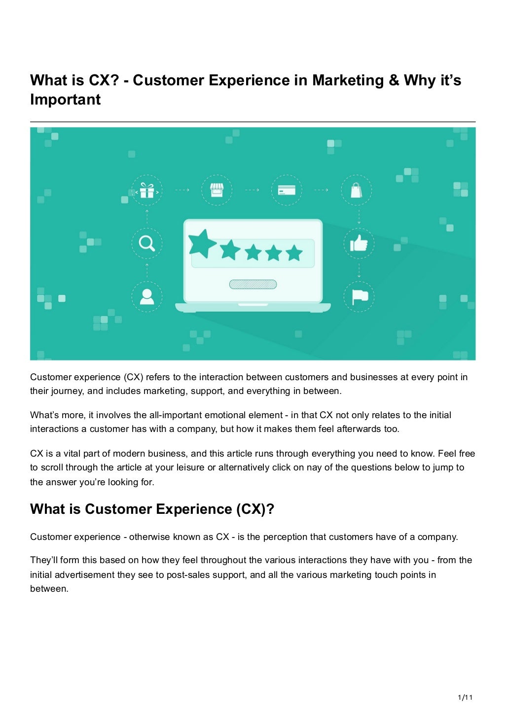 Customer experience (CX) encompasses all interactions a customer has with a brand and is critical for modern business success. It affects customer loyalty, retention, and revenue growth, driven by an increasing expectation for personalized and efficient service. Companies that prioritize improving their CX through strategic management, effective communication, and feedback integration are more likely to thrive in a digital economy.