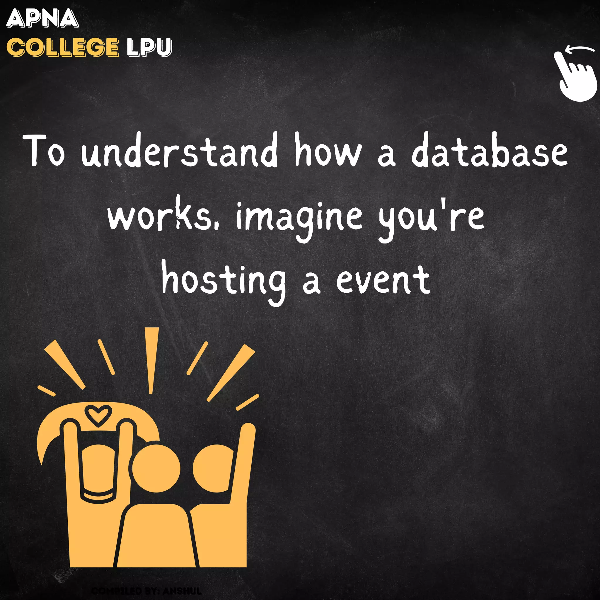 This document explains the concept of databases using an analogy of hosting an event, where tracking guests is compared to managing data. It emphasizes the efficiency of databases over manual systems, highlighting how data is organized in tables with specific columns for easy retrieval using query language like SQL. The overall message promotes the utility and simplicity of using databases for data management.