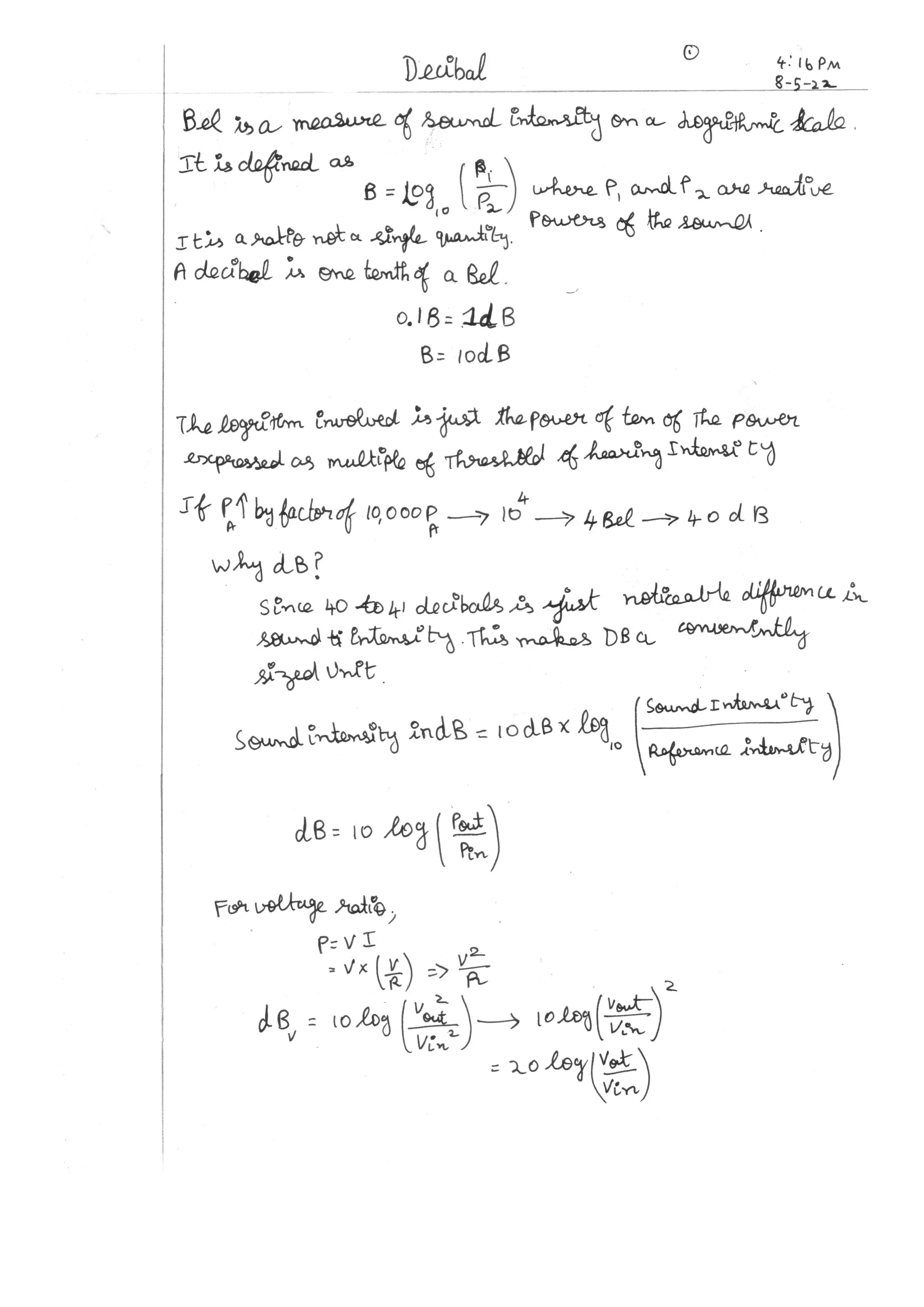 Sound intensity and level are measures of the sound energy passing through a given area over time. The decibel scale is used to quantify sound levels on a logarithmic scale, where each increase of 10 decibels represents a tenfold increase in sound intensity. Common sounds like quiet conversation measure around 60 decibels while loud sounds like a rock concert can exceed 100 decibels.