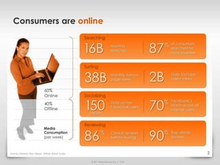 Digital marketing involves helping businesses generate online leads, elevate their brand reputation, and find new revenue opportunities through paid search, search engine optimization, social media, and website development. The document discusses how consumers research companies online and the importance of monitoring a business's online reputation through reviews and social media. It also advertises an upcoming seminar on evaluating and improving a company's online reputation.