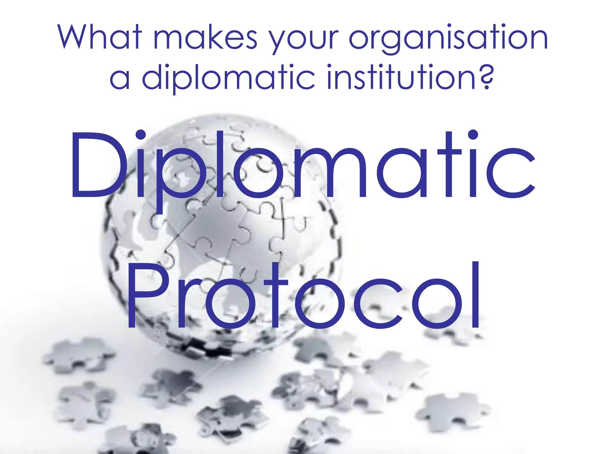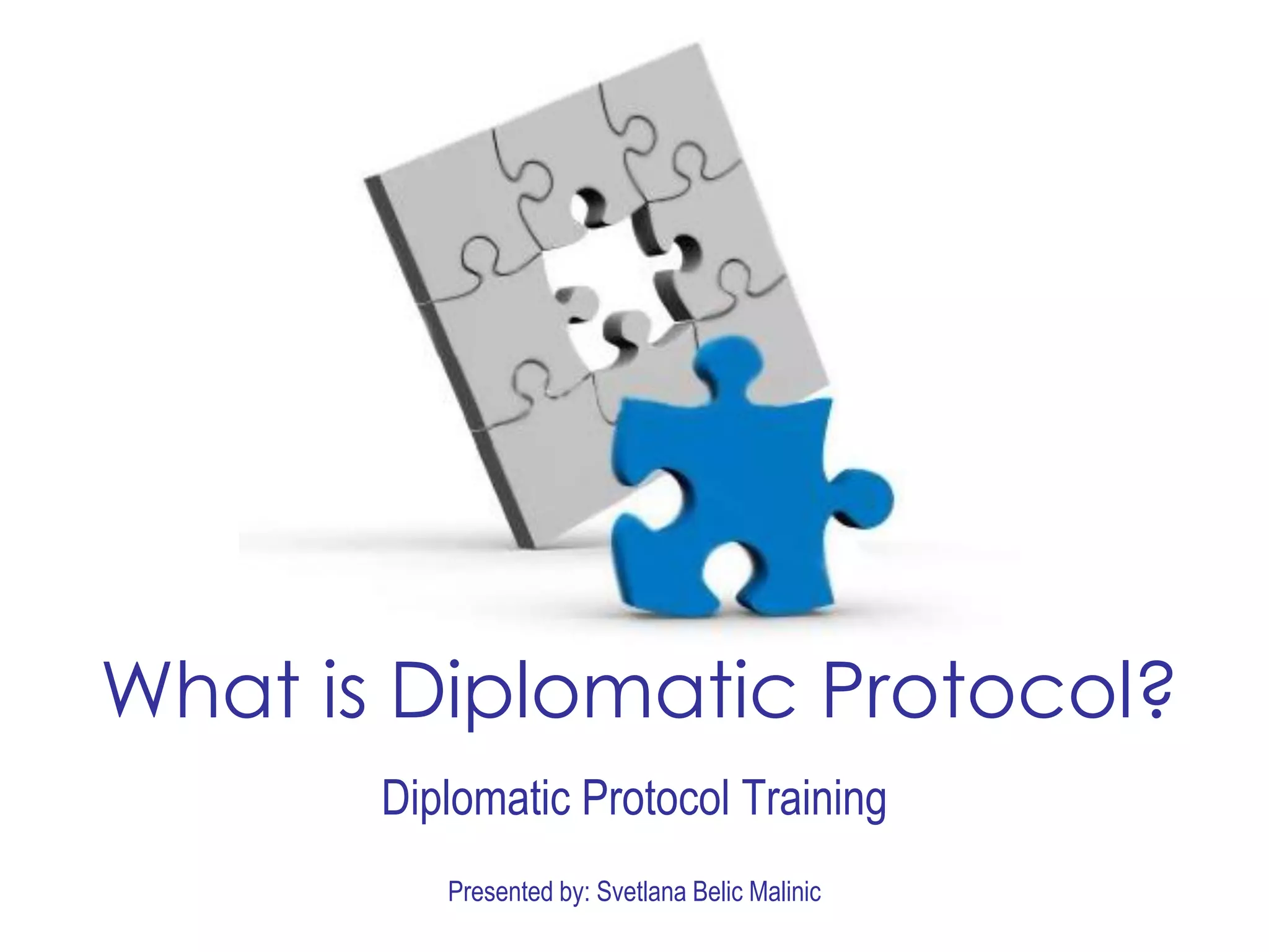 The document discusses diplomatic protocol. It defines protocol as international courtesy rules that make it easier for nations and people to live and work together. A protocol office promotes their organization as an international diplomatic institution, coordinates meetings for heads of missions and senior officials, and provides advice and guidance on diplomatic matters. Diplomatic protocol encompasses personal diplomacy including manners and self-presentation, corporate diplomacy including communication and cross-cultural etiquette, and ceremonials and social events including event logistics, seating plans, and forms of address. The document concludes with a 10 question quiz testing knowledge of diplomatic protocol norms.