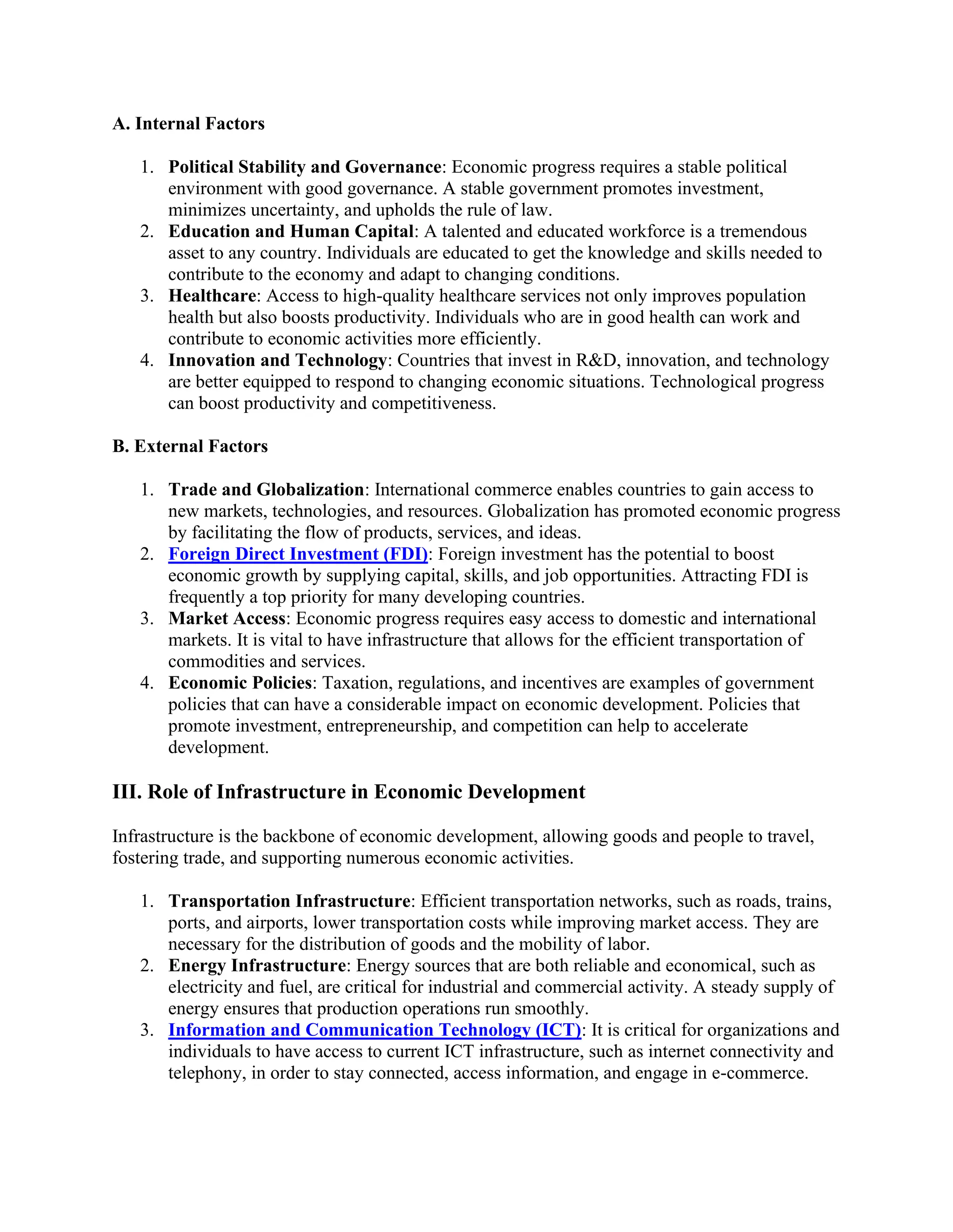 Economic development encompasses the long-term improvement of living standards through economic, social, and political factors, emphasizing a holistic approach beyond mere GDP growth. Key determinants include equitable income distribution, human development, infrastructure, political stability, education, healthcare, technology, and globalization. A comprehensive strategy integrating these elements is essential for sustainable economic growth and improved societal welfare.