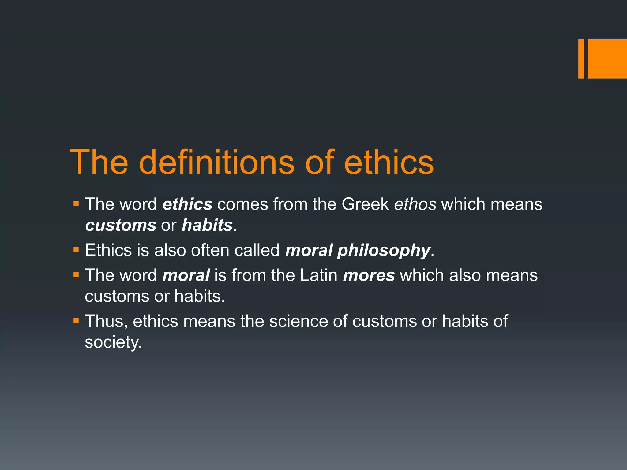 This document defines ethics and discusses its scope and methods. It provides several definitions of ethics, describing it as the science of customs or habits in society and the study of right and good human conduct. It notes ethics is a normative science that seeks to determine moral standards rather than describe natural phenomena. The document outlines several methods of ethics, including psychological, historical, and metaphysical approaches. It states the true method is both empirical and transcendental, systematically explaining moral judgments. The objective of ethics is defining the highest good for humans or society as a basis for moral reasoning.
