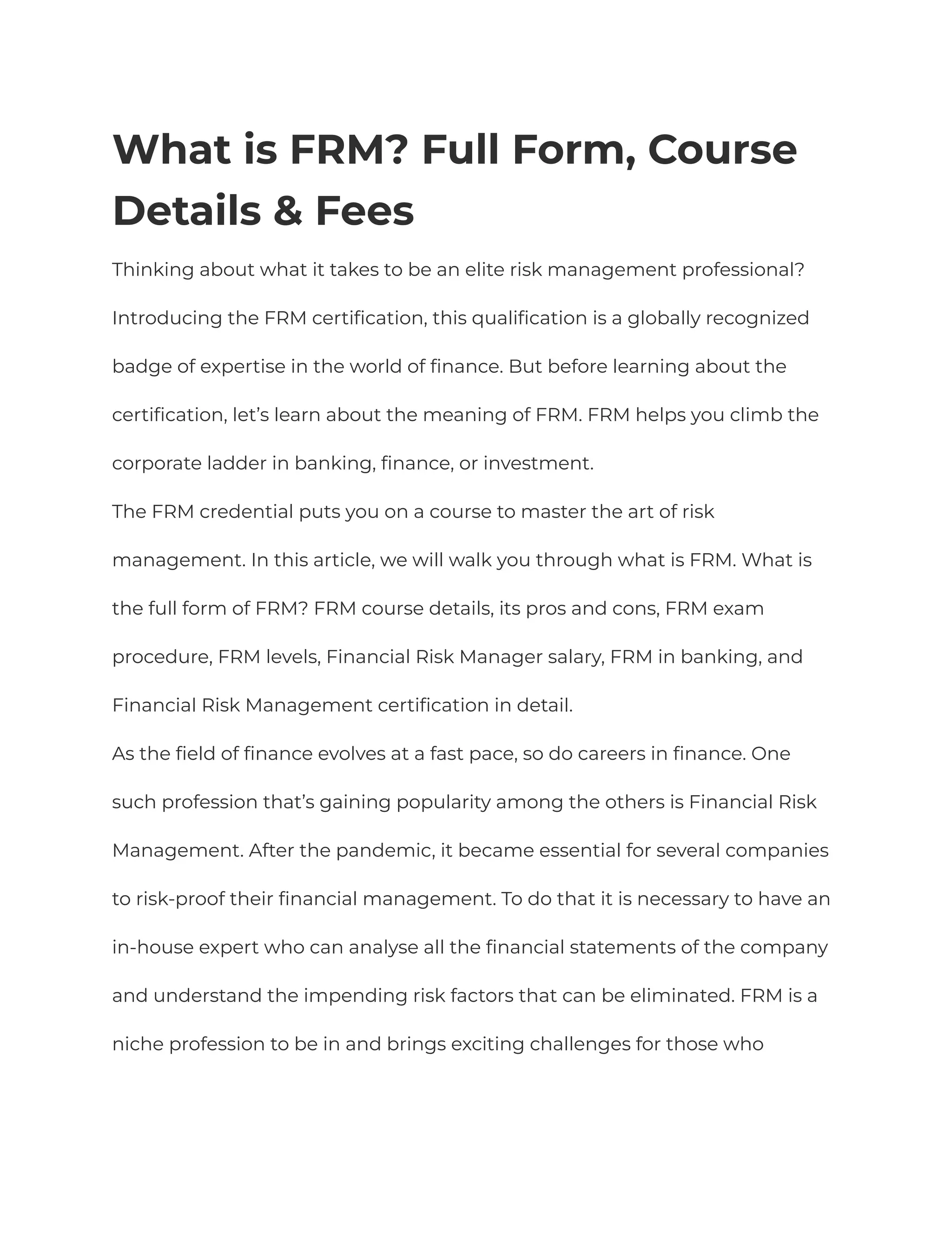management. In this article, we will walk you through what is FRM. What is
