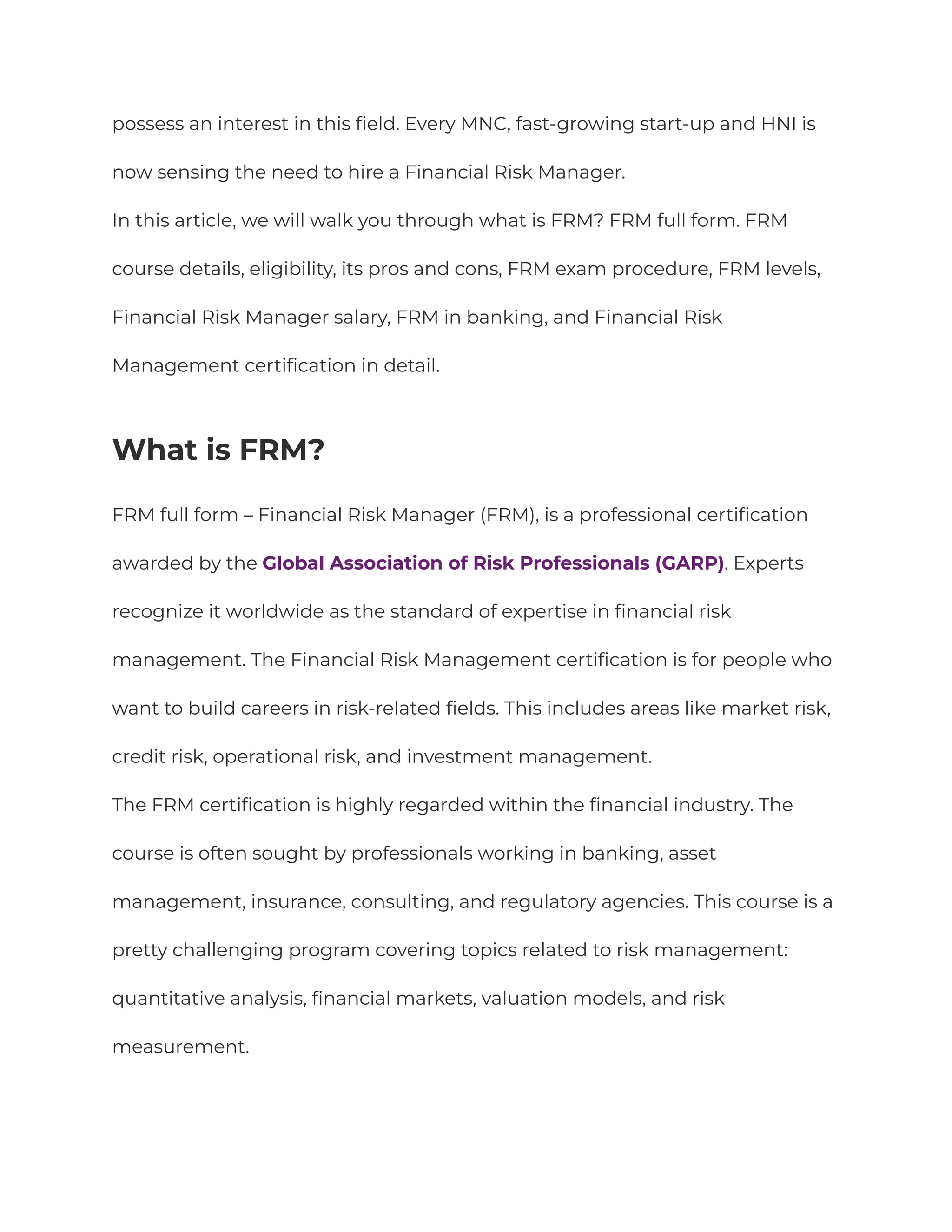 FRM Course Details
