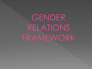 This document discusses taking a gender-based approach to teaching students about equality and feminism. It analyzes aspects of gender relations that may be seen in texts, including patriarchal power and oppression, stereotypes of women and gender roles, and sexist attitudes towards women. It also considers whether texts project feminist or masculinist viewpoints, and the characteristics of masculinity, femininity, and aggression that may be evident in characters.