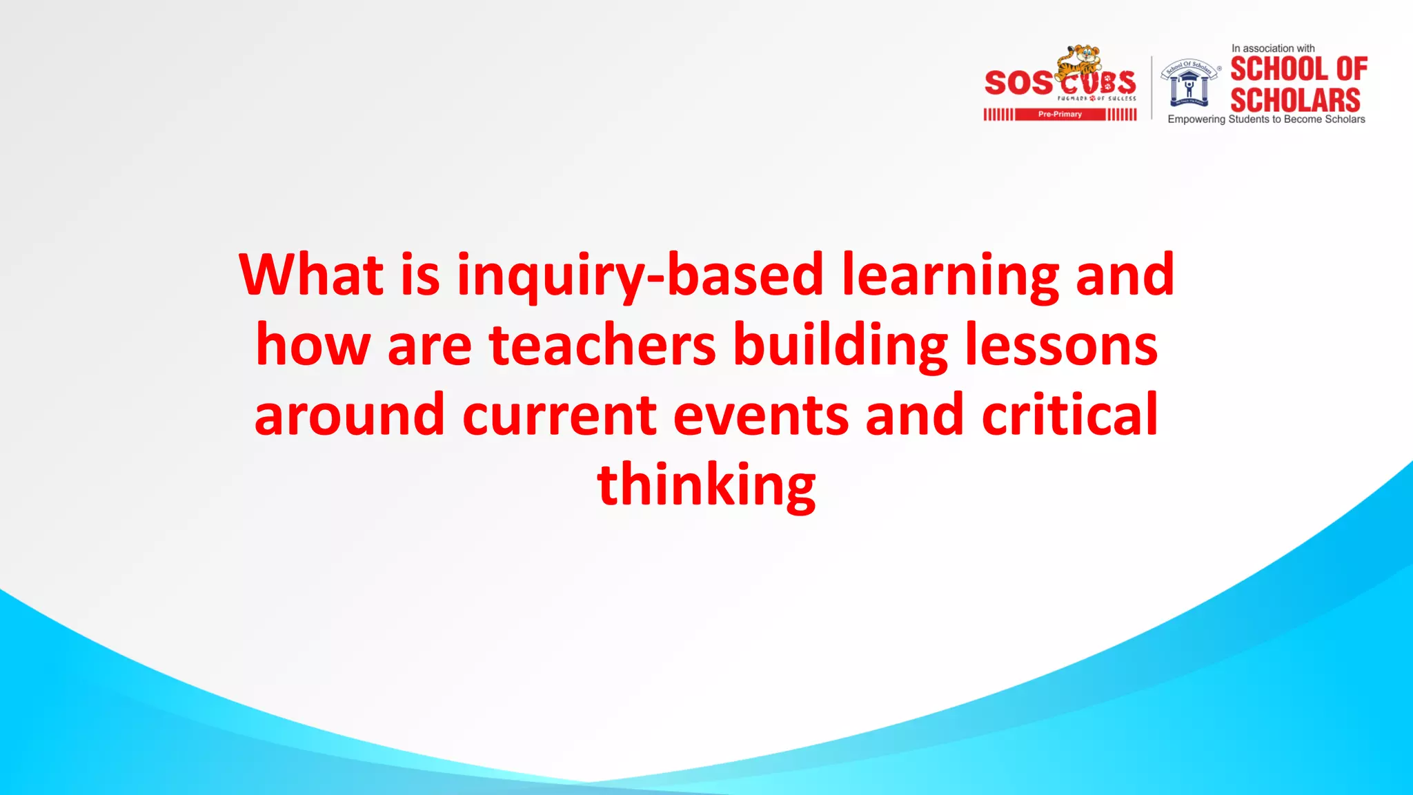 The document discusses inquiry-based learning, which involves students exploring topics through questioning and hands-on activities to make real-world connections. It emphasizes arousing student curiosity over simply delivering facts. Teachers need training to successfully implement inquiry-based lessons. Tips for teachers include avoiding answering all student questions, keeping introductions brief, being adaptable, allowing one's own curiosity, and reflecting on the learning process. While some programs claim to use inquiry-based learning, their rigid structures may limit real student-led inquiry.