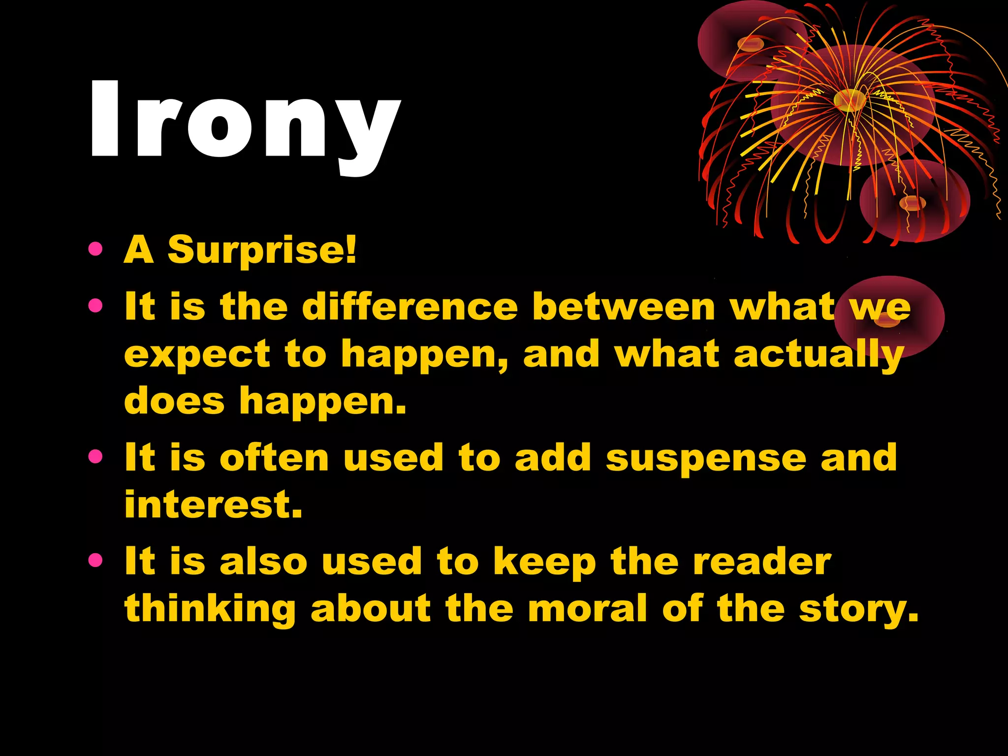 The document defines and provides examples of three types of irony: verbal, situational, and dramatic. Verbal irony involves saying one thing and meaning another, like pretending to be sick. Situational irony occurs when a situation turns out opposite of expectations, such as a teacher's daughter dropping out of school. Dramatic irony exists when the audience knows something characters do not, like knowing Jason is stalking victims in Friday the 13th.