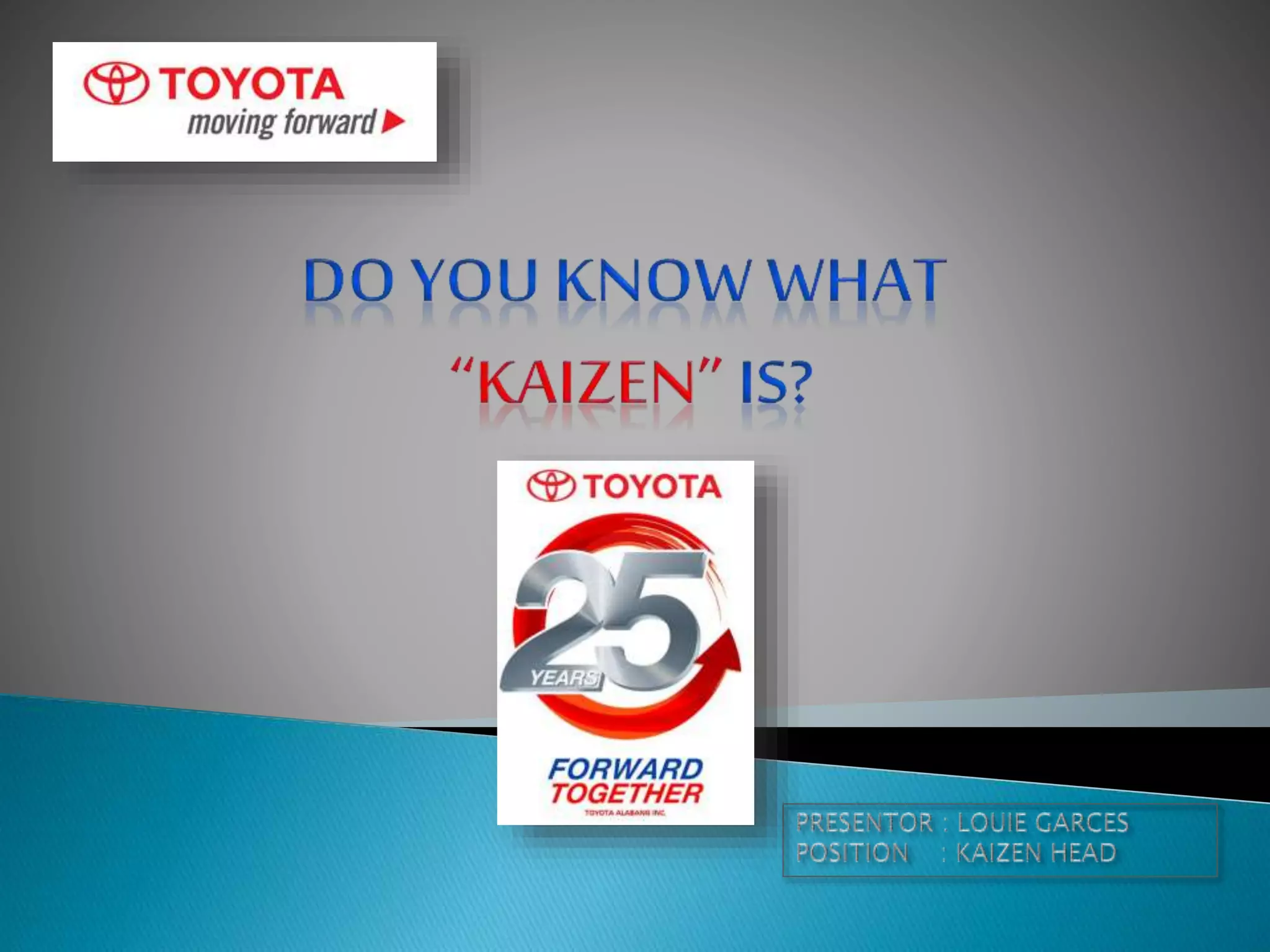 The document provides an overview of a company orientation on Kaizen and quality control circles. It discusses the meaning of Kaizen as continuous improvement and outlines the Toyota Production System. It then explains the basic principles and significance of quality control circle activities, including selecting problems, grasping current situations, setting targets, and using the PDCA cycle. The document concludes by outlining best practices for presentations, including focusing on clear content for the intended audience and effective design and delivery techniques.