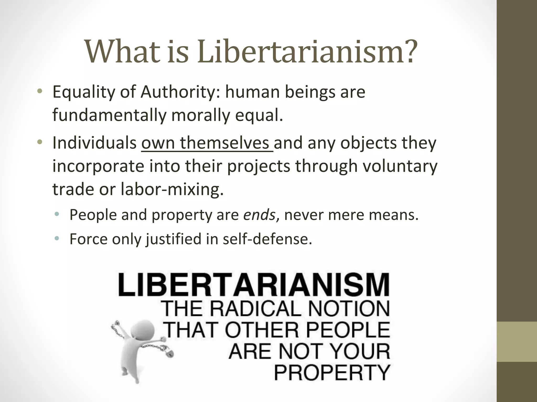 This document discusses and compares libertarianism, leftism, and statism. It defines libertarianism as believing in equal individual rights and that force is only justified in self-defense. It defines leftism as opposing authoritarianism, privilege, and oppression through concepts like intersectionality and anti-domination. It argues that the state uses violence and social norms to systematically oppress minorities and deny individual liberty, while markets free from state intervention could allow more choice and opportunity for the marginalized.