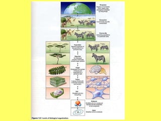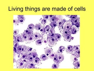 Living things are made of cells, reproduce, grow and develop. They obtain and use matter and energy, operate using genetic codes, and respond, adapt and change over time. The document discusses the key characteristics that define life and asks where one would go to study life.