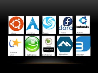 Linux is an open-source operating system that runs on various hardware platforms. It was created in 1991 by Linus Torvalds and is developed collaboratively by its community of users and developers. Linux exists in many different distributions, or "distros", that package the Linux kernel along with other software. Popular distros include Ubuntu, Fedora, openSUSE, Debian, and Arch Linux. Linux is widely used for servers, mainframes, embedded systems, and as an alternative to Windows on desktop computers and laptops. It offers advantages like open source access, customizability, security, and reliability.