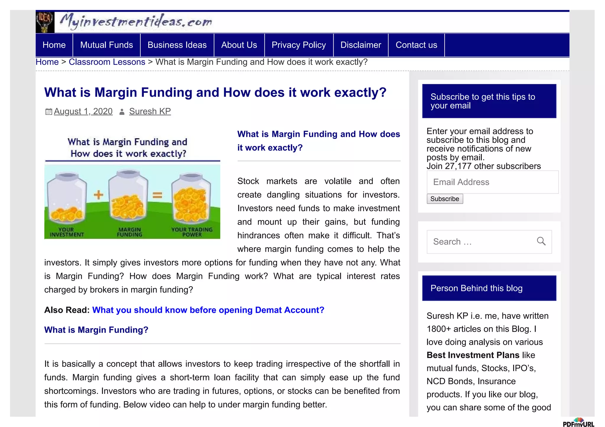 This document discusses margin funding, which provides short-term loans to investors to help ease cash flow issues and allow continued trading. Margin funding requires investors to put up only a portion of the investment amount, usually 50%, with the broker providing the rest as a loan. The loan has an interest rate typically between 15-18% charged by the broker. If the value of shares purchased with margin funding drops significantly, the investor may face a margin call requiring them to deposit more funds or risk having their position liquidated by the broker.