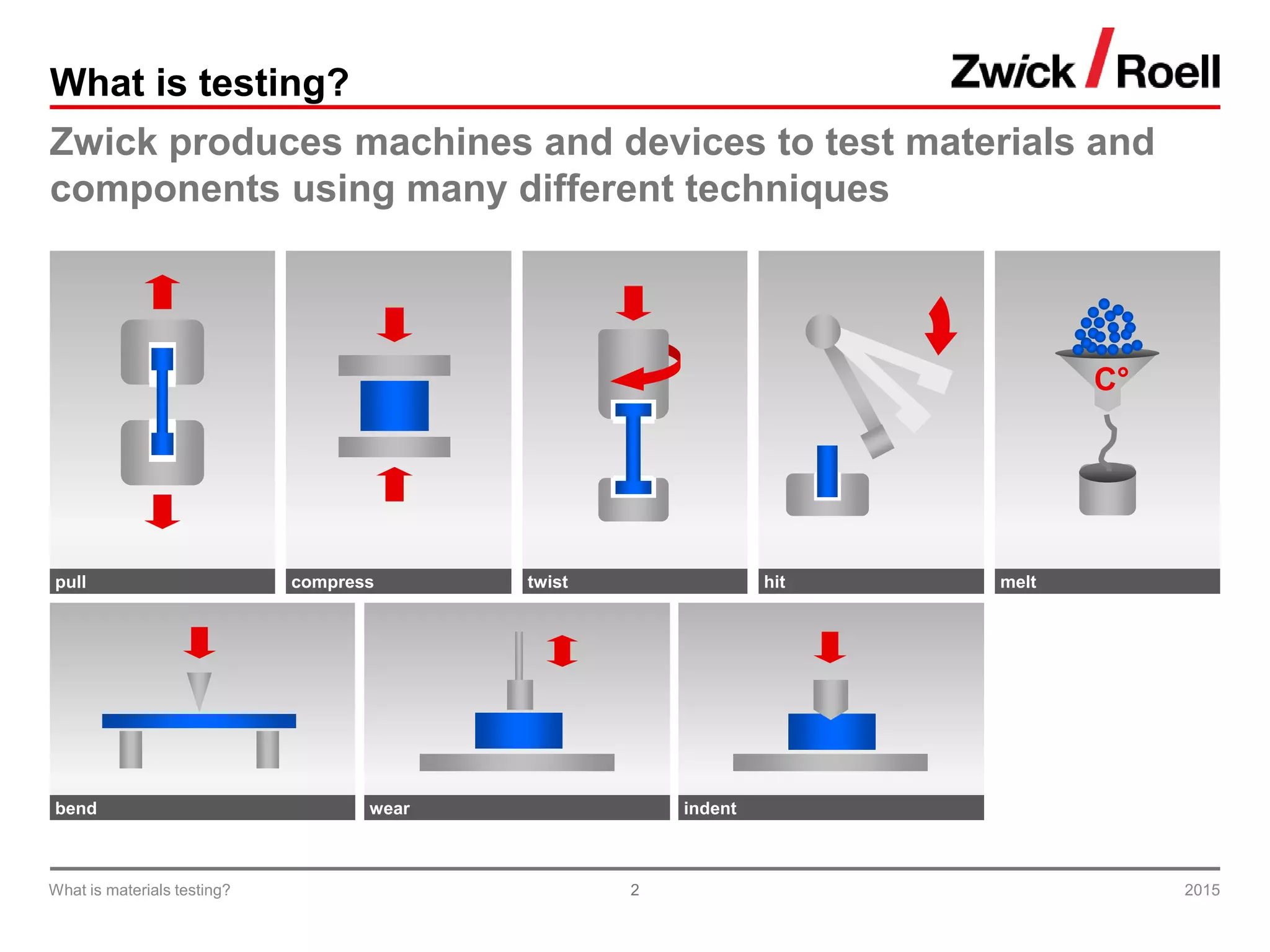 Materials testing involves evaluating the properties and performance of various materials and components using Zwick's testing machines, which range from small devices for fibers to large machines for railroad tracks. The company provides both standardized and customized testing solutions for a wide array of applications, including food, biomaterials, and construction materials. Zwick also offers extensive support and resources for users, connecting through multiple platforms.