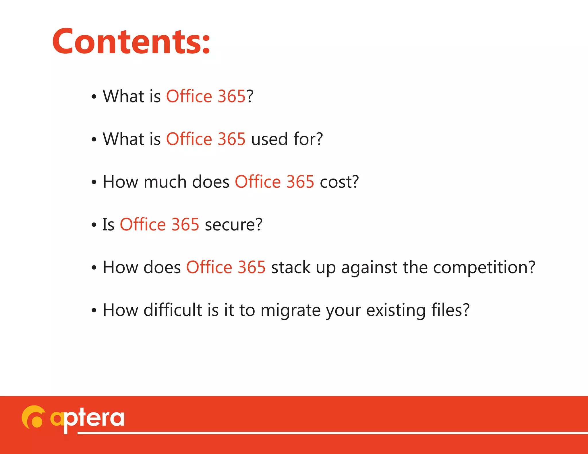 Office 365 is a cloud-based software service from Microsoft that allows users to access applications like Word, Excel, and Outlook from any device, anywhere, with various subscription plans available. It offers enhanced security measures compared to traditional on-premises solutions, emphasizing data protection through encryption, multifactor authentication, and modular datacenters. Compared to its main competitor, Google Apps, Office 365 is seen as more versatile and secure, though it may require external assistance for migration and implementation.