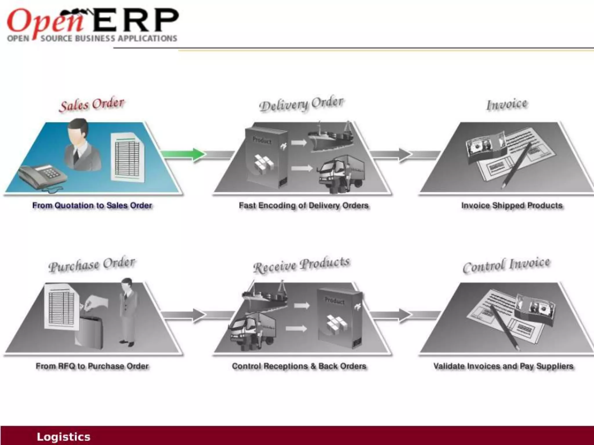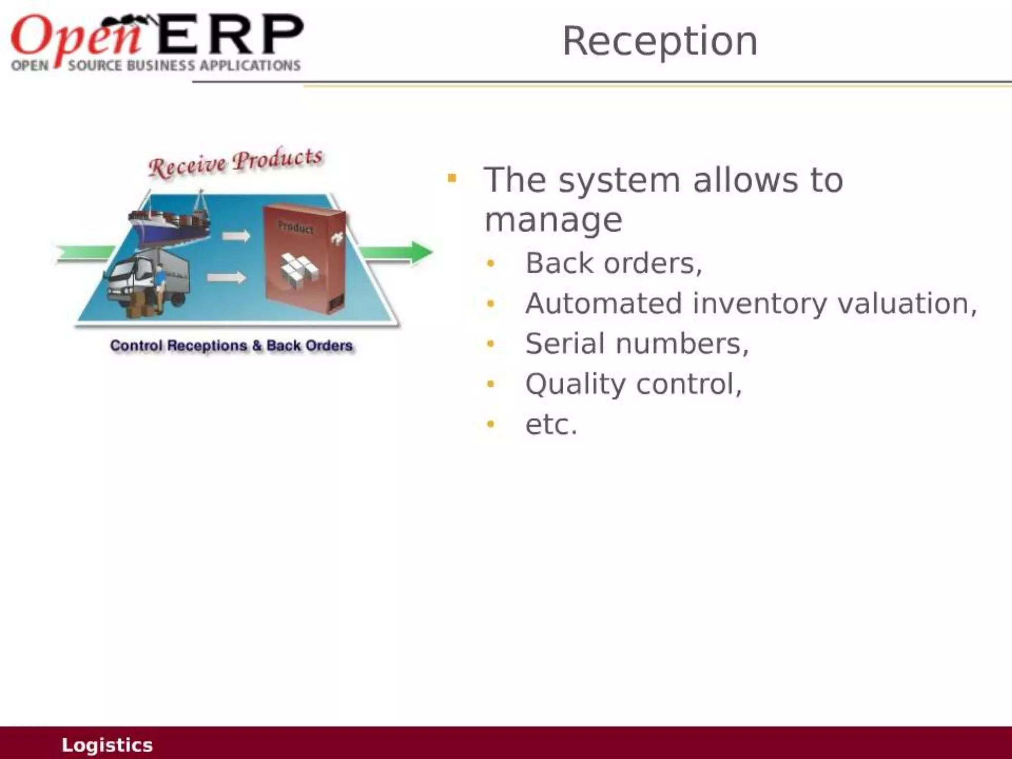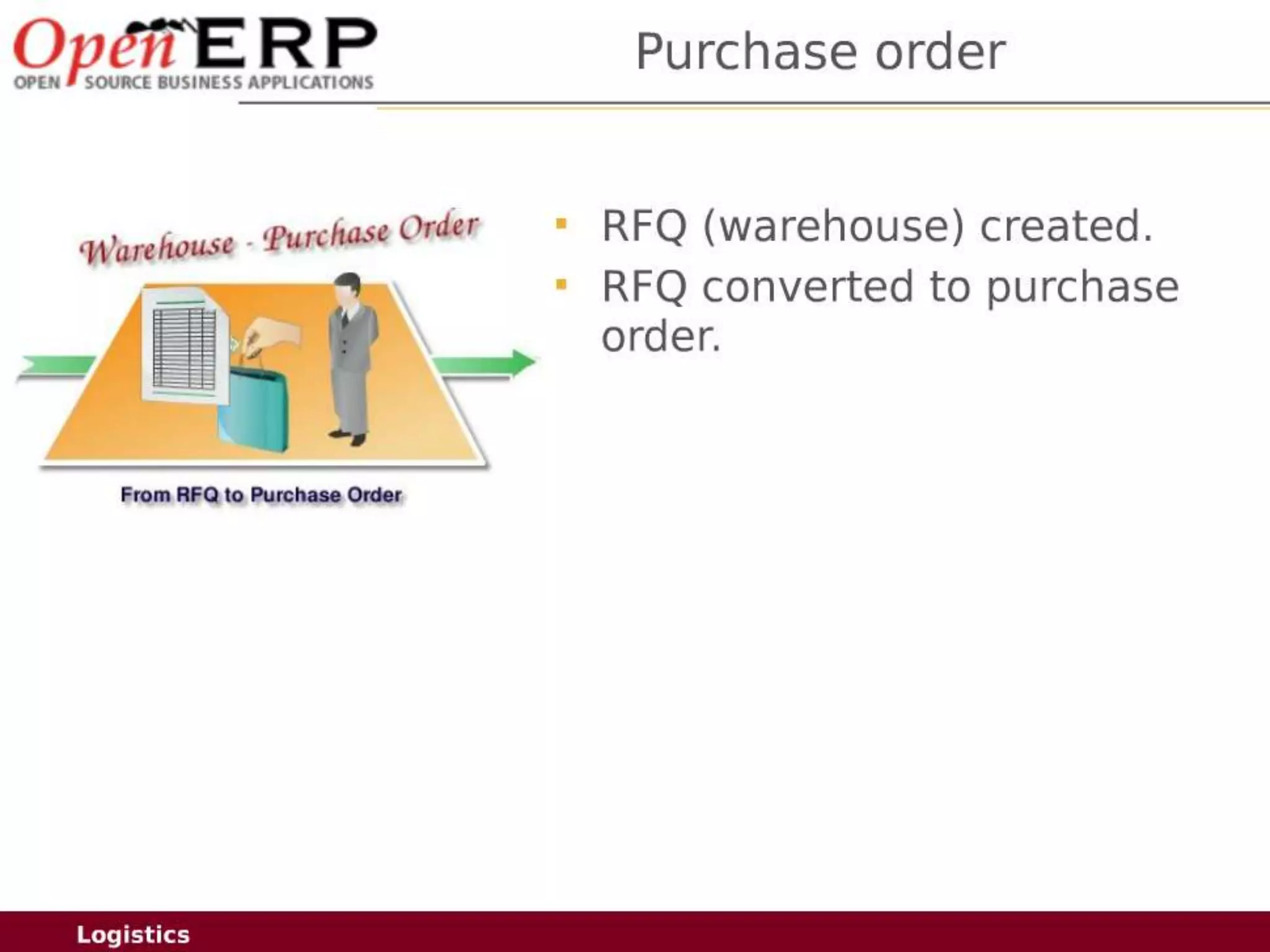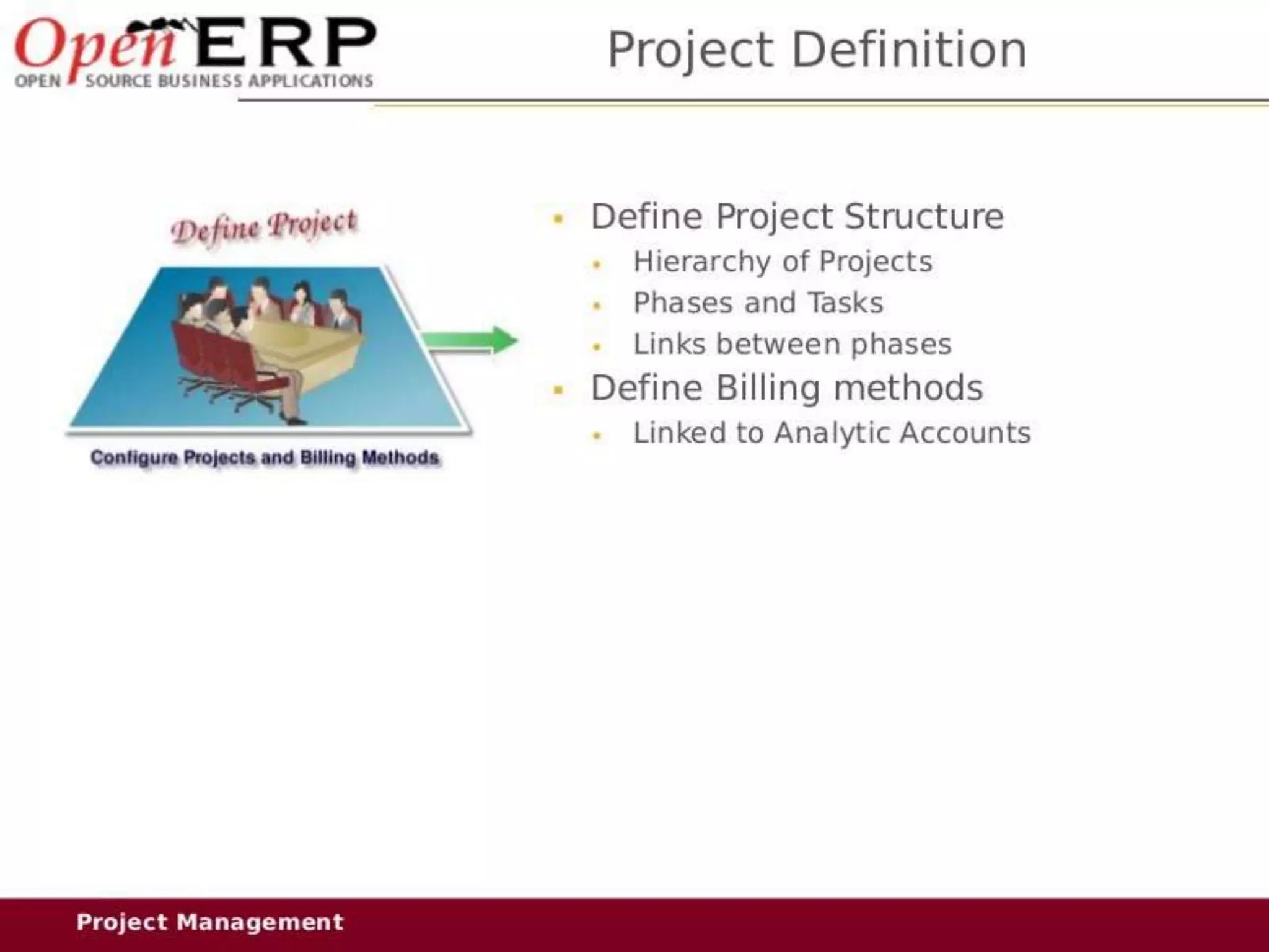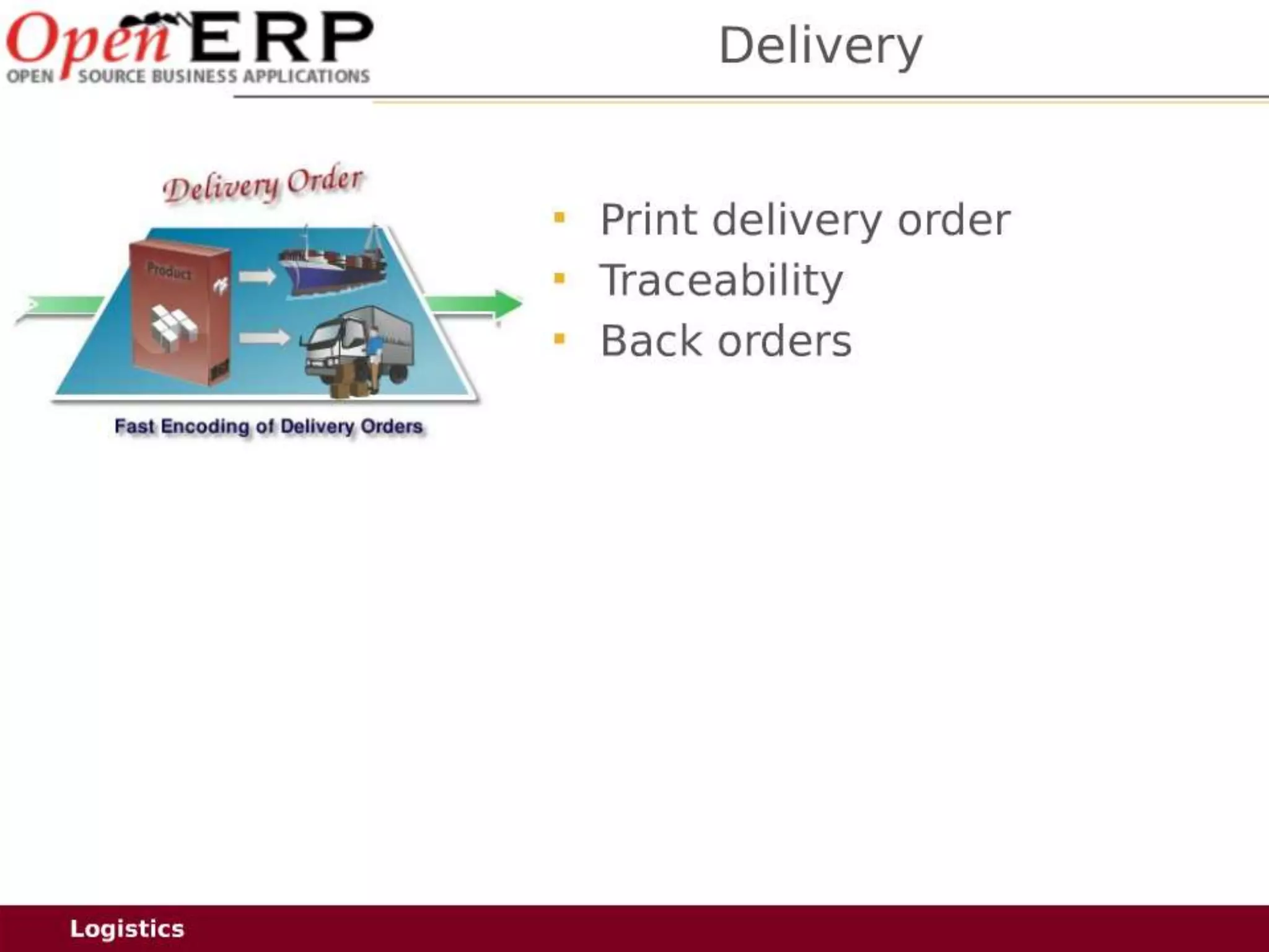 This document provides an overview of the OpenERP open source ERP software. It describes OpenERP as being open source, comprehensive with over 700 modules, modular allowing customers to start with one application and add more later, flexible allowing customization of the user interface, and affordable with no license fees. It also discusses OpenERP's vision of making business applications affordable for any company, its business model of leveraging community contributions and a volume sales model, and provides highlights of key features for various OpenERP functional modules.