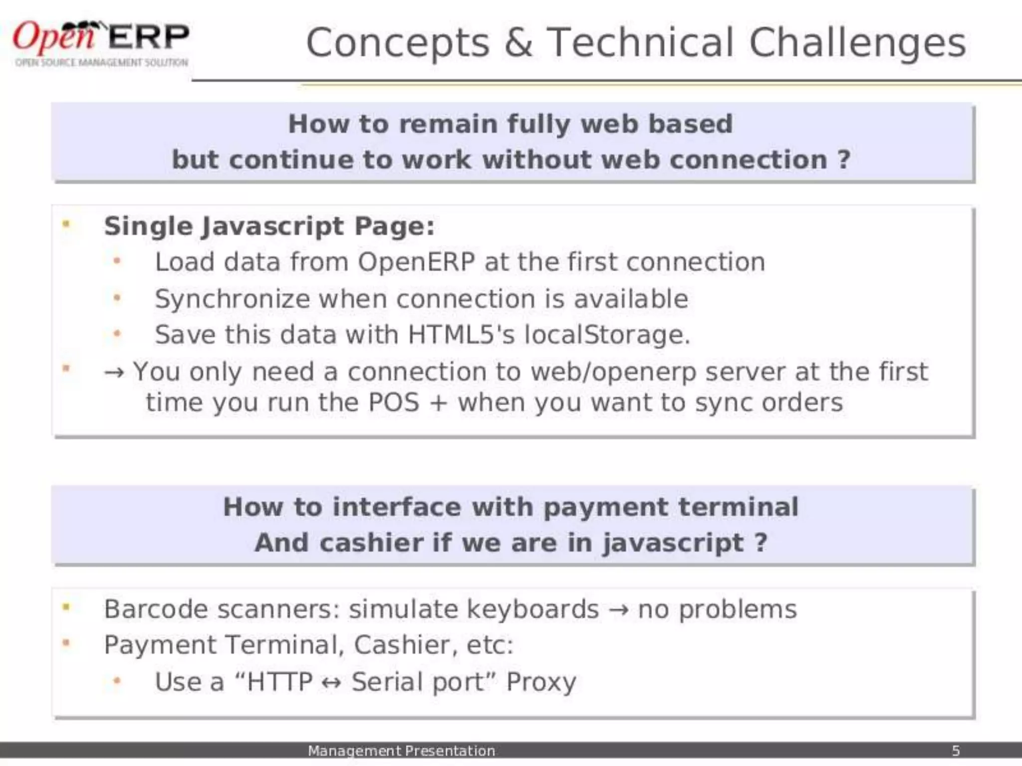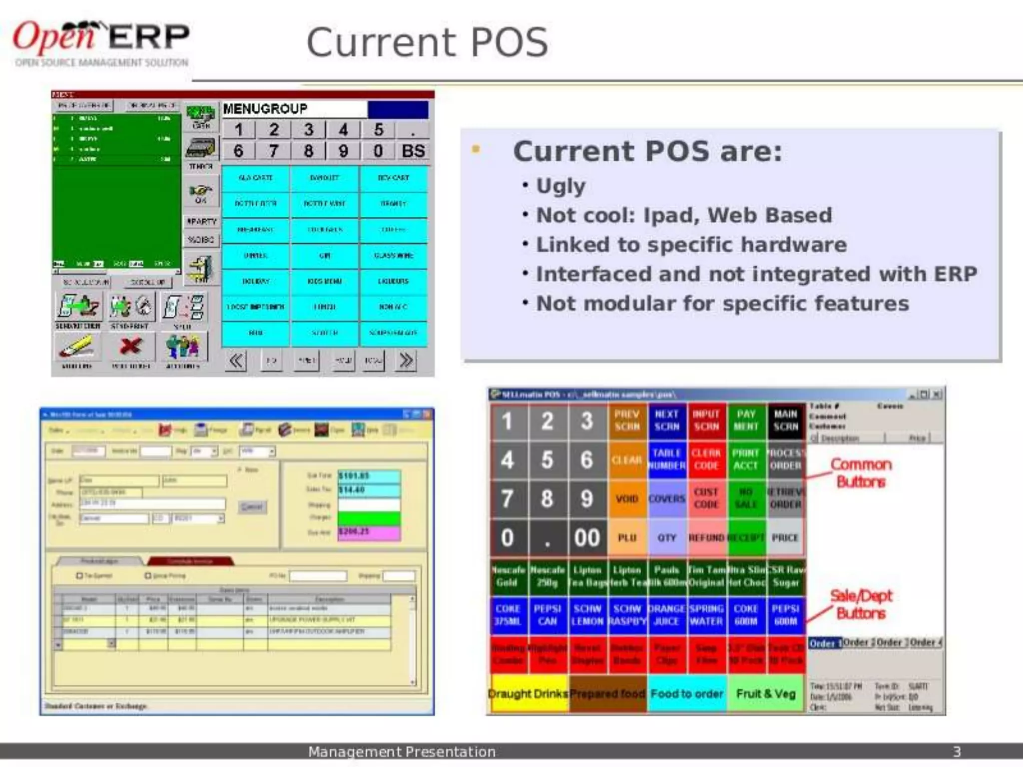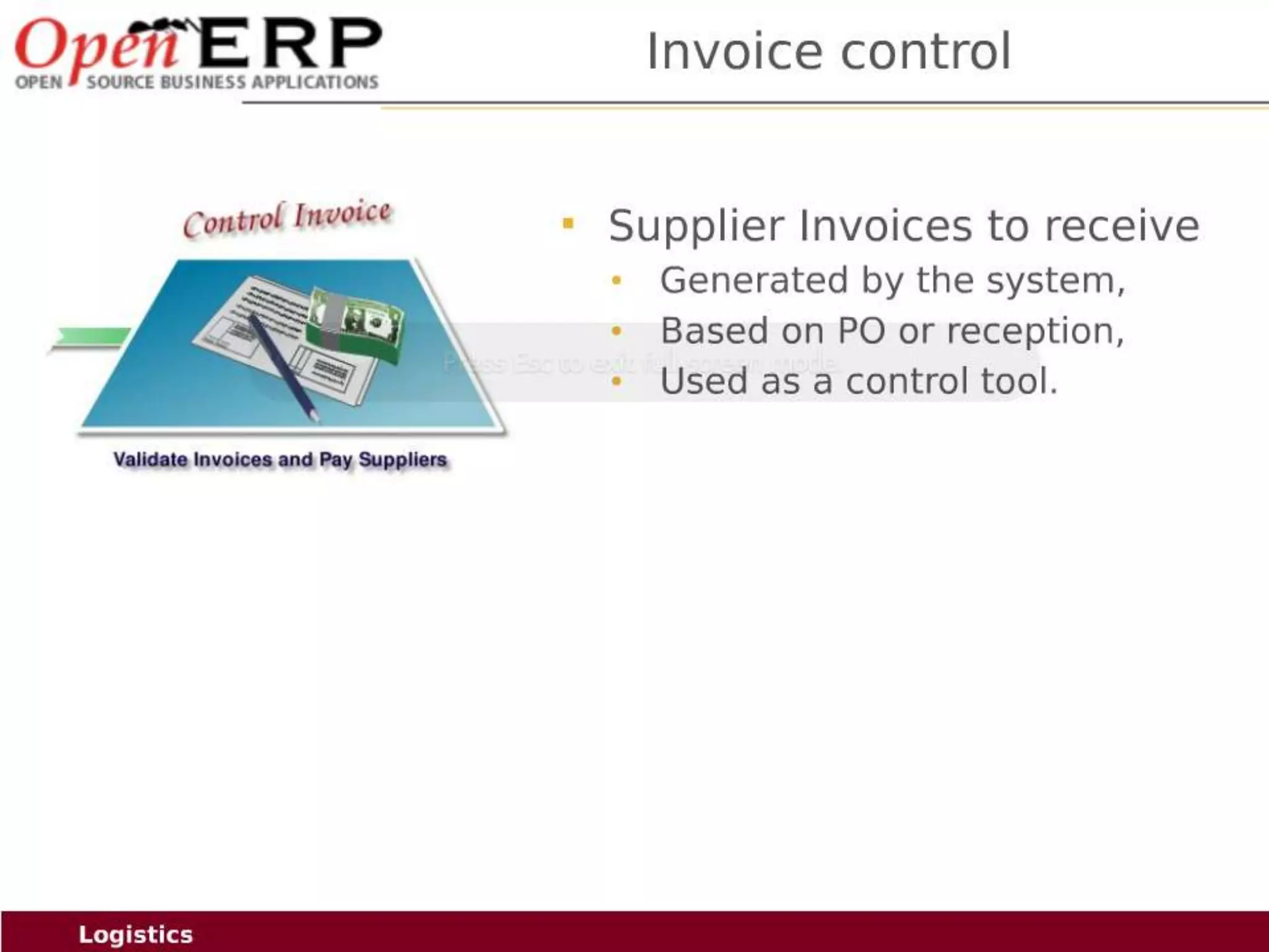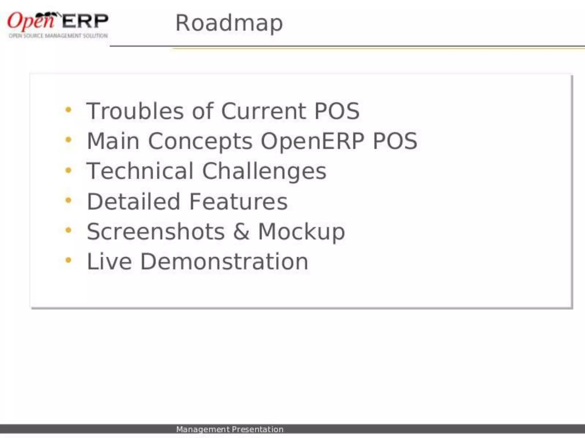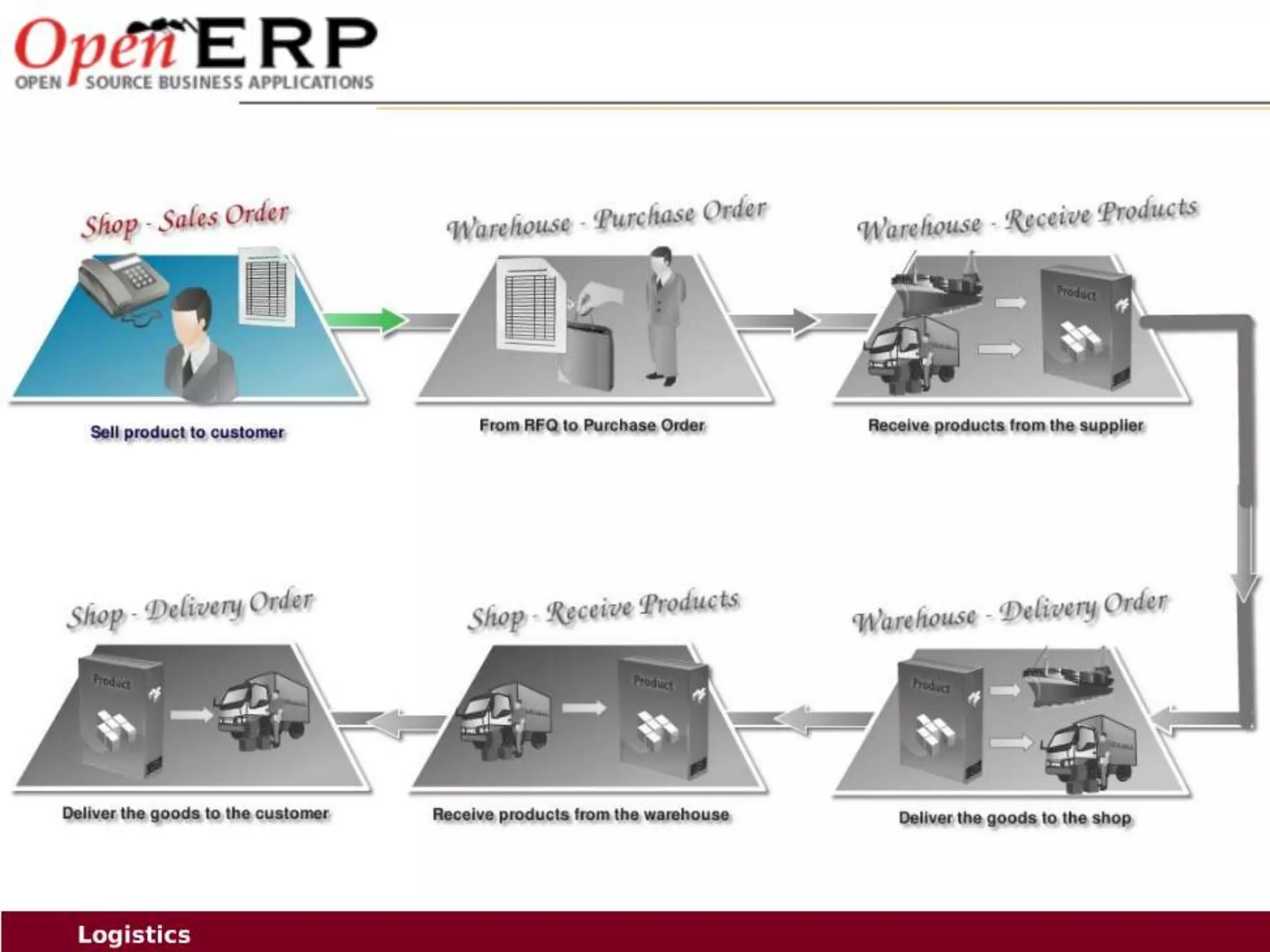 This document provides an overview of the OpenERP open source ERP software. It describes OpenERP as being open source, comprehensive with over 700 modules, modular allowing customers to start with one application and add more later, flexible allowing customization of the user interface, and affordable with no license fees. It also discusses OpenERP's vision of making business applications affordable for any company, its business model of leveraging community contributions and a volume sales model, and provides highlights of key features for various OpenERP functional modules.