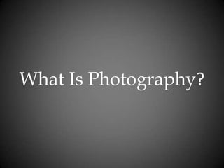 Photography can be defined as the process of producing images using light or other forms of radiation to capture objects on light-sensitive surfaces. However, photography means different things to different people. To the author, photography is an art form and creative outlet to capture and remember important people and moments. Photography does not always need to be professionally taken, and can be as simple as capturing a spontaneous moment. It involves freezing time and recording light and shadow to communicate a perspective or point. While it allows some to express emotions, others see it more as a way to teach people how to see the world. Ultimately, the meaning of photography is up to each individual to decide for themselves.