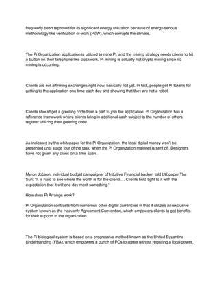 Pi Network is a cryptocurrency project launched in 2019 that aims to create a new digital currency. It allows users to mine Pi tokens by tapping a button in their phone app daily, however Pi currently has no value as it's not traded on exchanges and lacks a live blockchain or wallet. The project was created by academics to make cryptocurrency accessible to all, and uses a unique consensus method called the Skybridge Consensus Protocol that rewards users for supporting the network. While over 35 million users have joined to mine Pi, it remains unclear when the currency will launch on exchanges or what its value may be in the future.