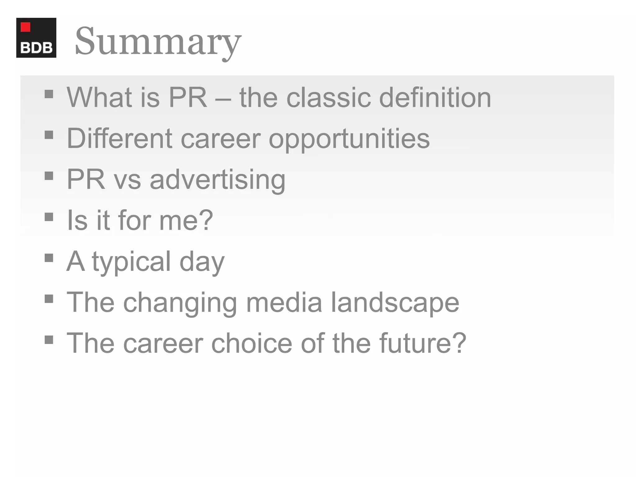 Alison Owen's presentation at the PRCA conference outlines the fundamentals of public relations (PR), career opportunities in agency versus in-house roles, and the distinct differences between PR and advertising. She emphasizes the evolving media landscape, the significance of reputation management, and the skills necessary for success in PR, highlighting its rapid growth as a career choice. The presentation also covers the impact of digital channels and social media on PR practices and strategies.