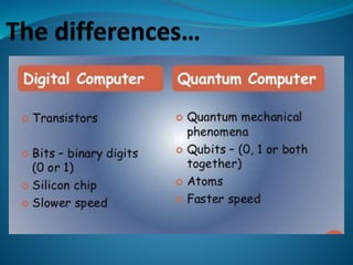 Quantum computing focuses on developing technology based on quantum theory, enabling computers to operate orders of magnitude faster than classical computers by using qubits, which can represent multiple states simultaneously. This technology is essential for solving complex problems in various fields, including national security and business, where traditional computers fall short. Key challenges include isolating quantum states to maintain their coherence and the limitations in measuring quantum systems without disturbance.