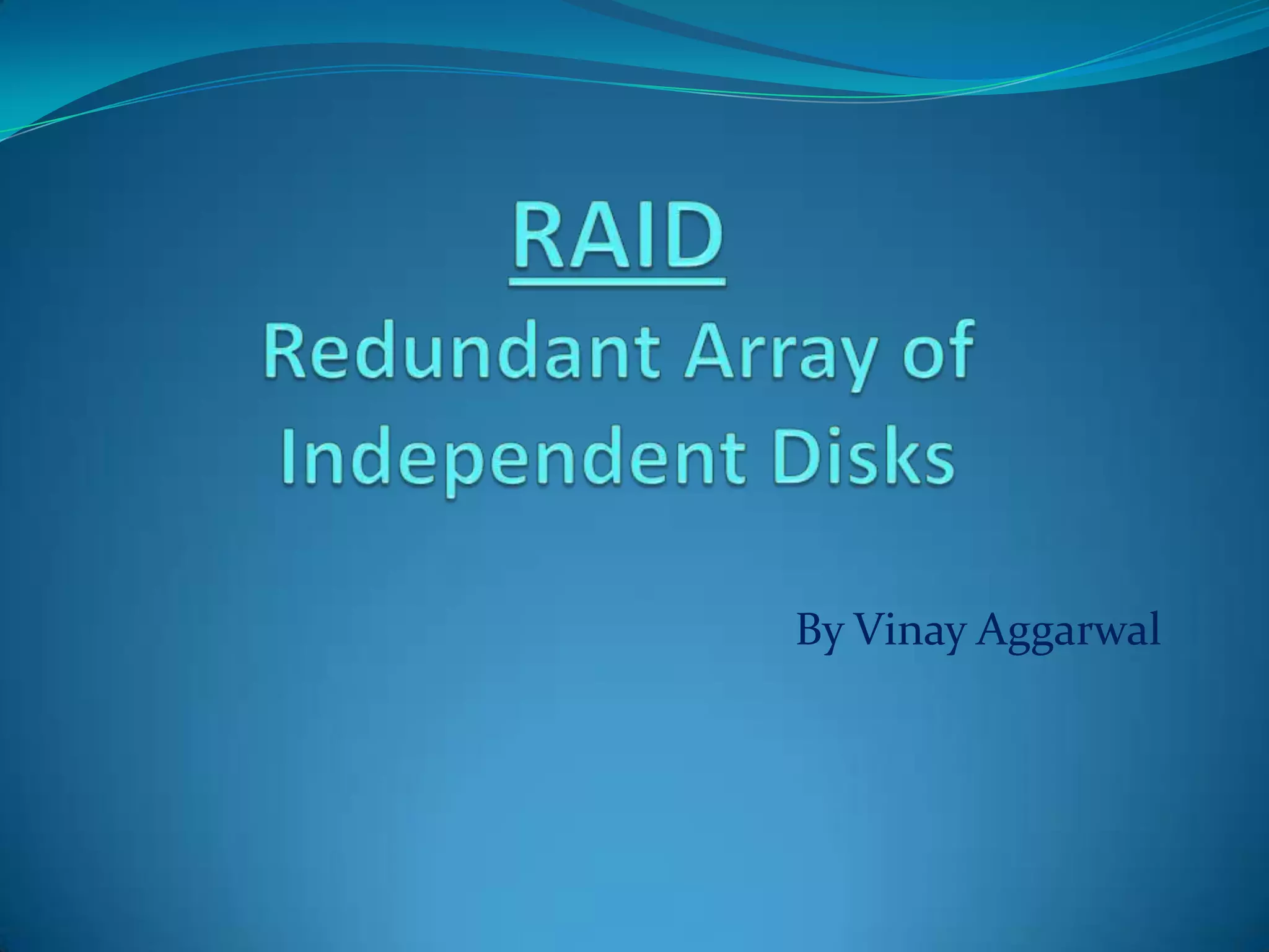 The document explains RAID (Redundant Array of Independent Disks) technology, which enhances storage reliability and performance by using multiple disk drives for redundancy. It outlines various RAID configurations, such as RAID 0, 1, 5, and combinations like RAID 1+0, detailing their benefits and drawbacks. Additionally, the document describes both software and hardware implementations of RAID, including a practical example of configuring a RAID setup using a specific controller on a Dell PowerEdge server.