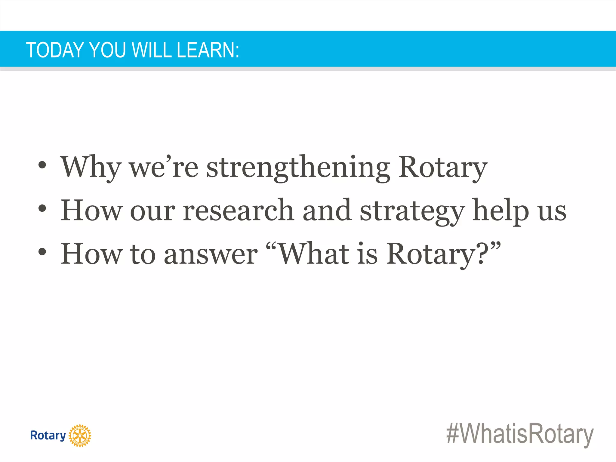 The document outlines the essence and objectives of Rotary, emphasizing its values such as diversity, ethical leadership, and community impact. It highlights the strategies designed to clarify Rotary's mission and motivate current and prospective members, focusing on personal connections and professional development. Key findings indicate that Rotarians are motivated by fellowship and a desire to positively impact their communities globally.