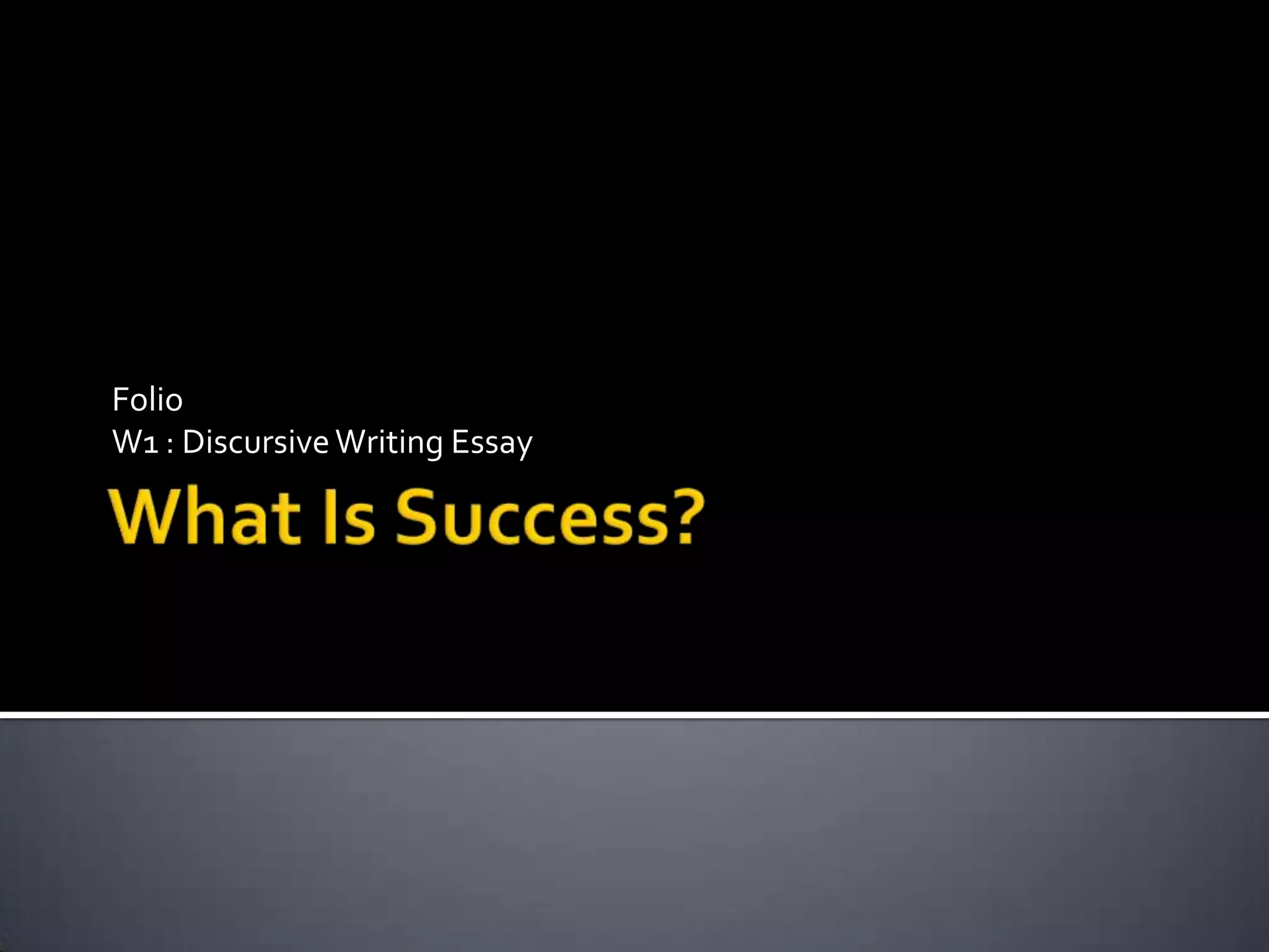 The document provides instructions for writing a discursive essay assignment on the topic of "What is success?". It outlines the key points to be addressed in the essay: (A) defining success, (B) giving examples of successful people and why they are successful, (C) discussing qualities that lead to success and how others can be successful, and (D) summarizing the main points and posing a concluding question to the reader. The document emphasizes that success can be defined differently and measured in various ways, and advises gathering facts to support opinions expressed in the essay.