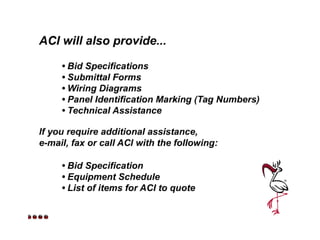 Advance Controls, Inc. is located at 4505 18th Street East in Bradenton, Florida. Their phone number is 800.559.9ACI and 941.746.3221. The document provides contact information for Advance Controls, Inc. including their address and phone numbers.