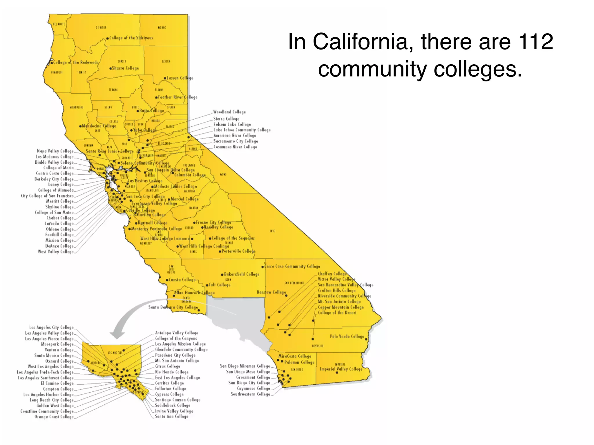 The document outlines the objectives and activities of a center designed to connect California's 112 community colleges through communication, collaboration, and professional development. It emphasizes the importance of building an online presence for both educators and students to enhance their connectivity and opportunities. The center facilitates hangouts and discussions to share best practices and innovations in teaching, significantly impacting the experiences and teaching methods of participants.