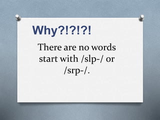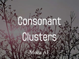 The document discusses consonants, defining them as speech sounds created by stopping airflow. It details the internal segmental structures of syllables, including onset, nucleus, and coda, and explains consonant clusters as groups of consonants surrounding vowels. The document also outlines rules for consonant clusters in English, noting specific occurrences and exceptions.