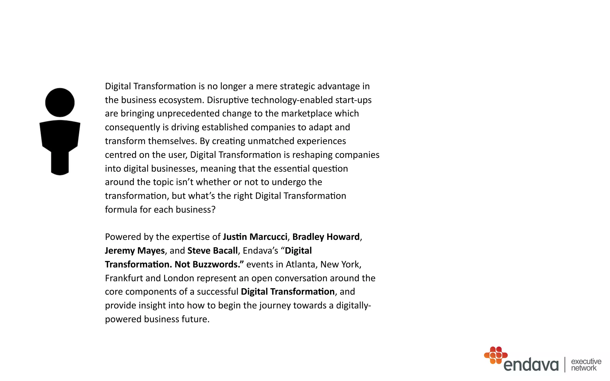 Digital transformation is crucial for businesses to adapt to disruptive technologies, focusing on user experience as the core of successful adaptation. Endava's eight-step framework emphasizes an iterative process that aligns user goals with business objectives, facilitating measurable improvements. Future events will address advanced methodologies to continue the dialogue on effective digital transformation practices.