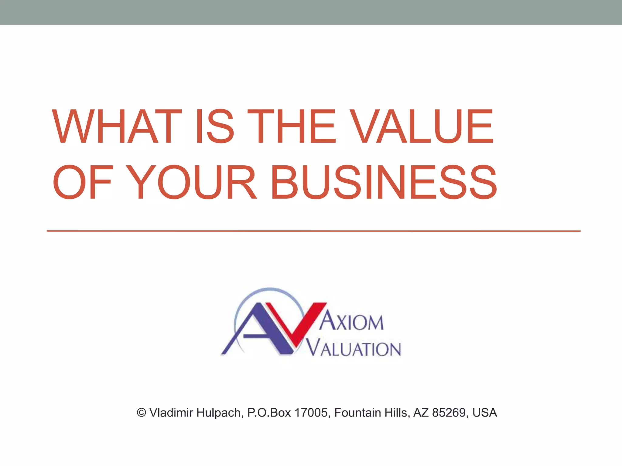 This document discusses the importance of understanding the value of a business. It notes that while business owners often only consider valuation when selling, other needs like estate planning, financing, and succession planning also require understanding value. The document outlines factors that influence business value like growth, industry, and competition. It then summarizes common valuation methods like asset, market, and income approaches. Finally, it stresses the importance of planning exit strategies in advance through techniques like buy-sell agreements, mergers/acquisitions, and tax strategies.