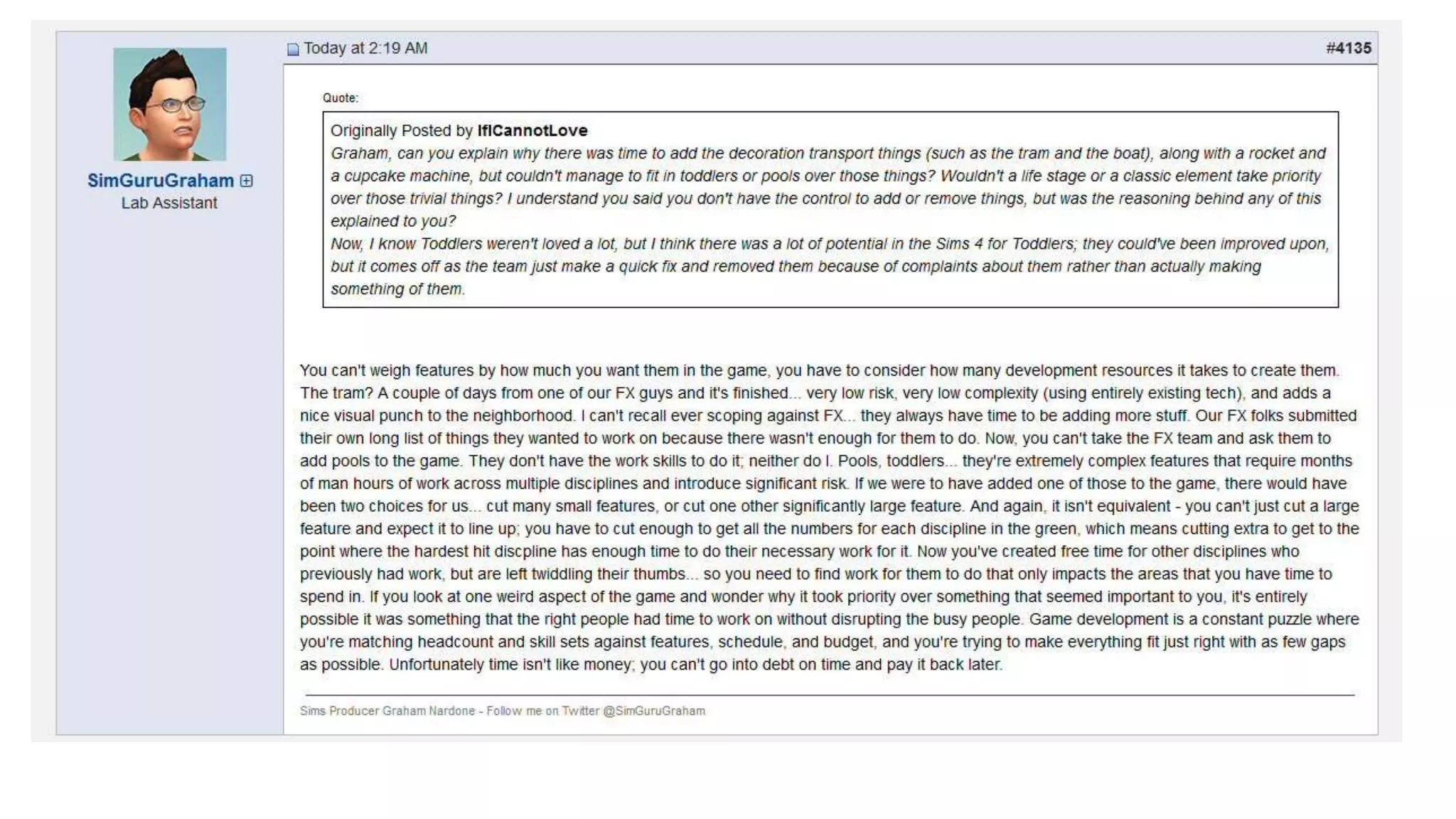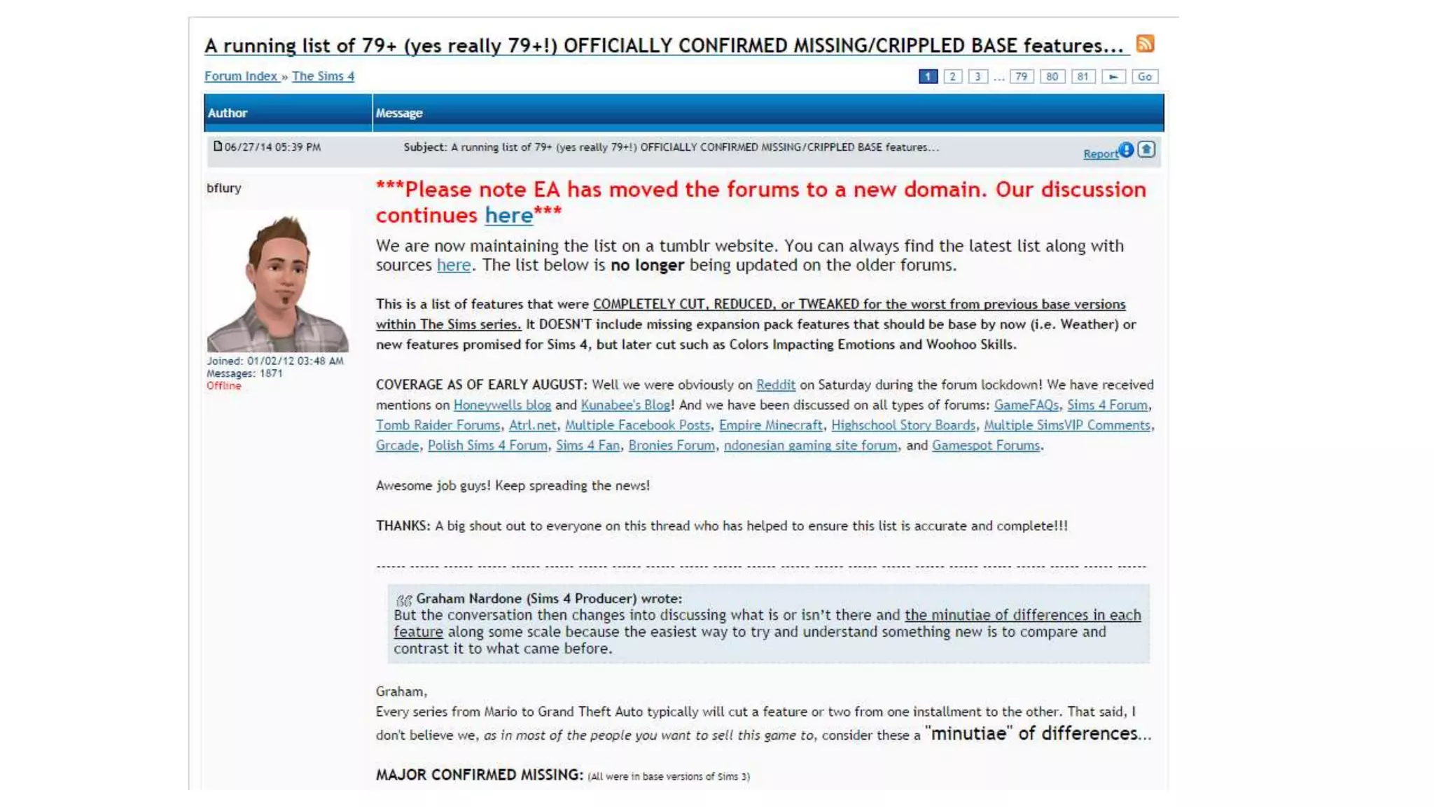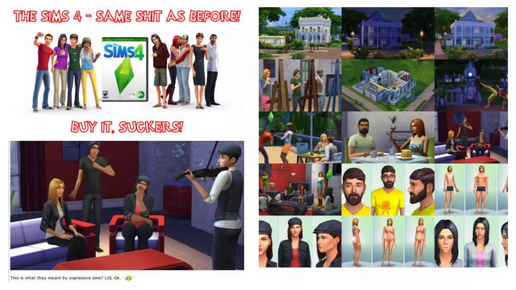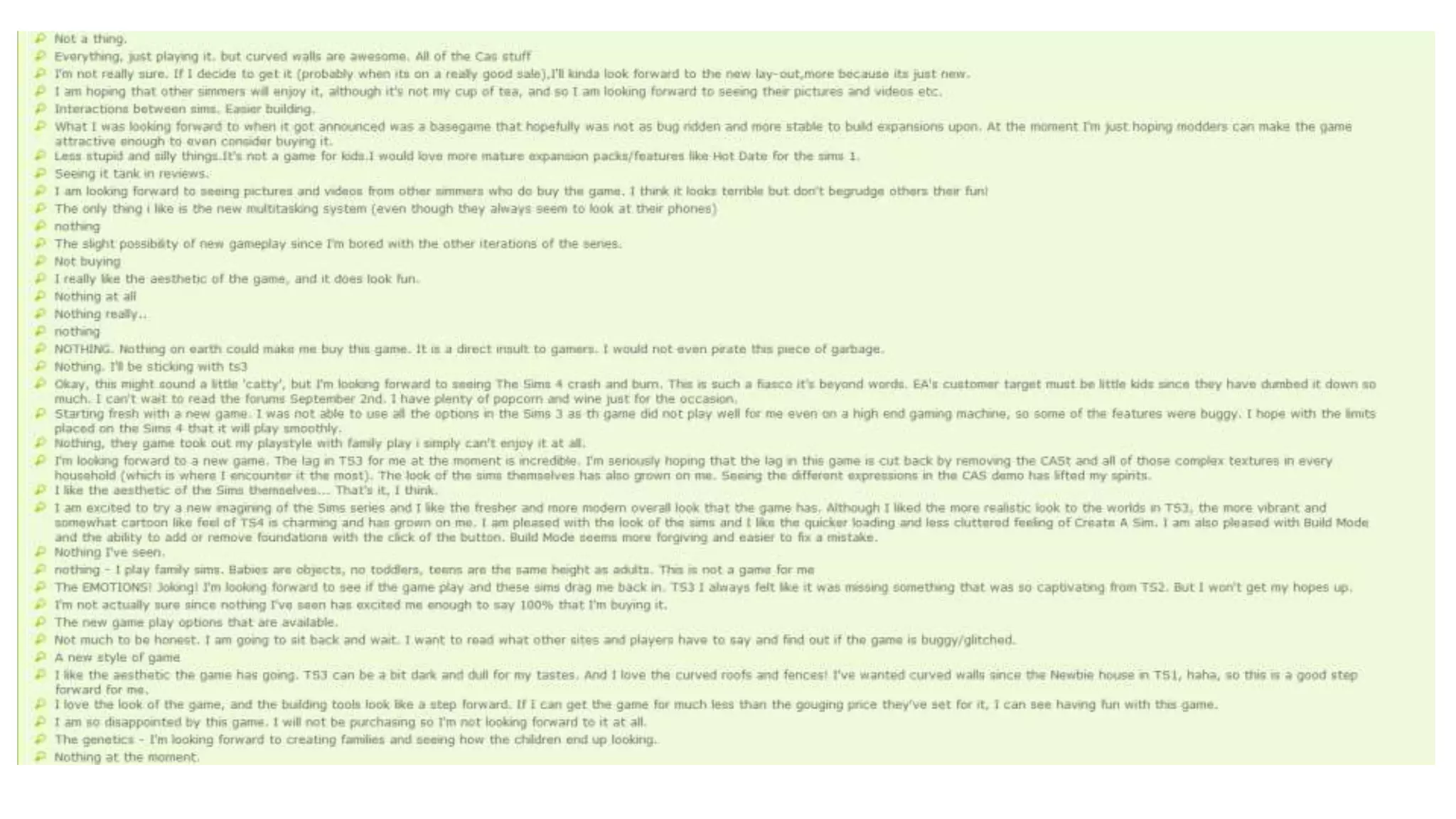 This document discusses the promotion and marketing of The Sims 4 video game by EA during its development and launch. It describes EA's prerelease promotion activities like inviting fan "VIPs" to playtest events. It also discusses fan and reviewer responses to early marketing from EA, some of which were very critical of EA's promotional approach and videos. The document also examines EA's responses to previous game launch failures and broken games. It provides commentary from fans on EA's public relations strategies.