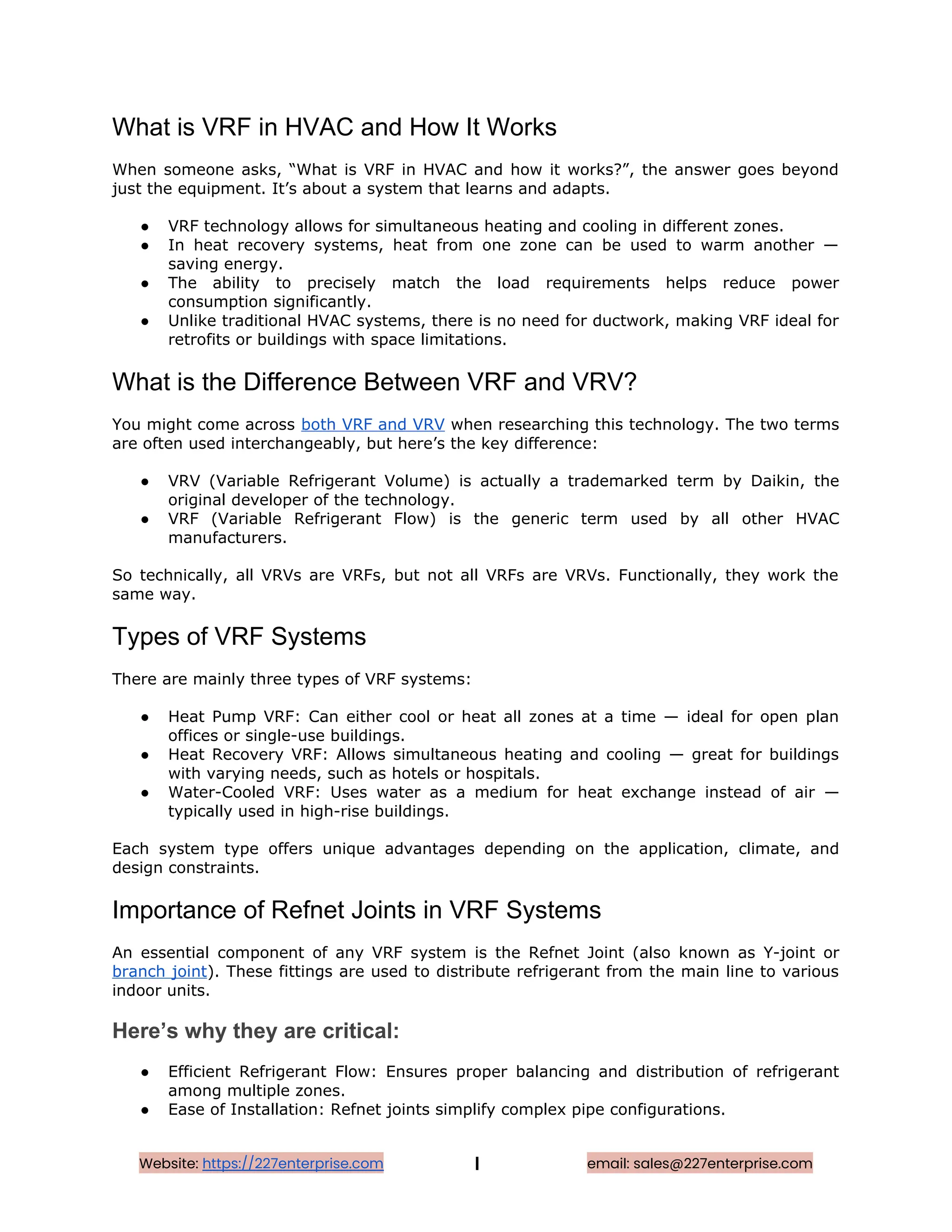 VRF (Variable Refrigerant Flow) is an advanced HVAC system that provides energy-efficient heating and cooling by regulating refrigerant flow to multiple indoor units. Ideal for zoning, it ensures precise temperature control and reduced energy consumption.