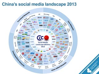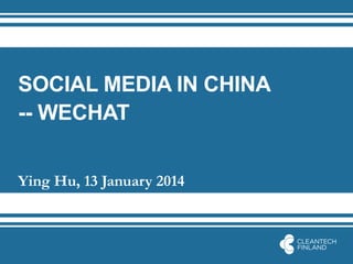 WeChat is a popular mobile social network in China with over 500 million users. It allows users to send messages, pictures, videos and voice messages in private chats or to groups. WeChat can be used by companies for branding and marketing through its ability to send one message pack per day of up to three stories with 600 characters each. While similar to WhatsApp, WeChat differs from Sina Weibo in being mobile-focused for direct communication versus Weibo's use as a microblogging platform for widely distributing information and creating viral content.