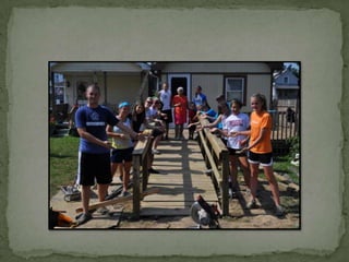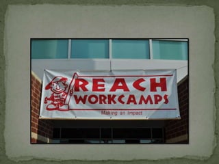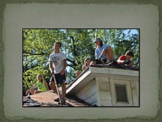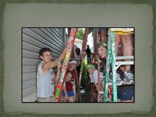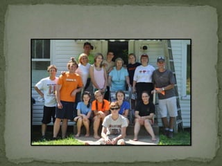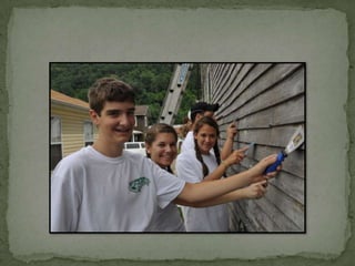Work camp involves youth traveling together in a crew to complete various construction, painting, yard work and other service projects for neighbors and the community. The youth also bond through daily devotions, worship, fun activities and van rides during their camp experience.