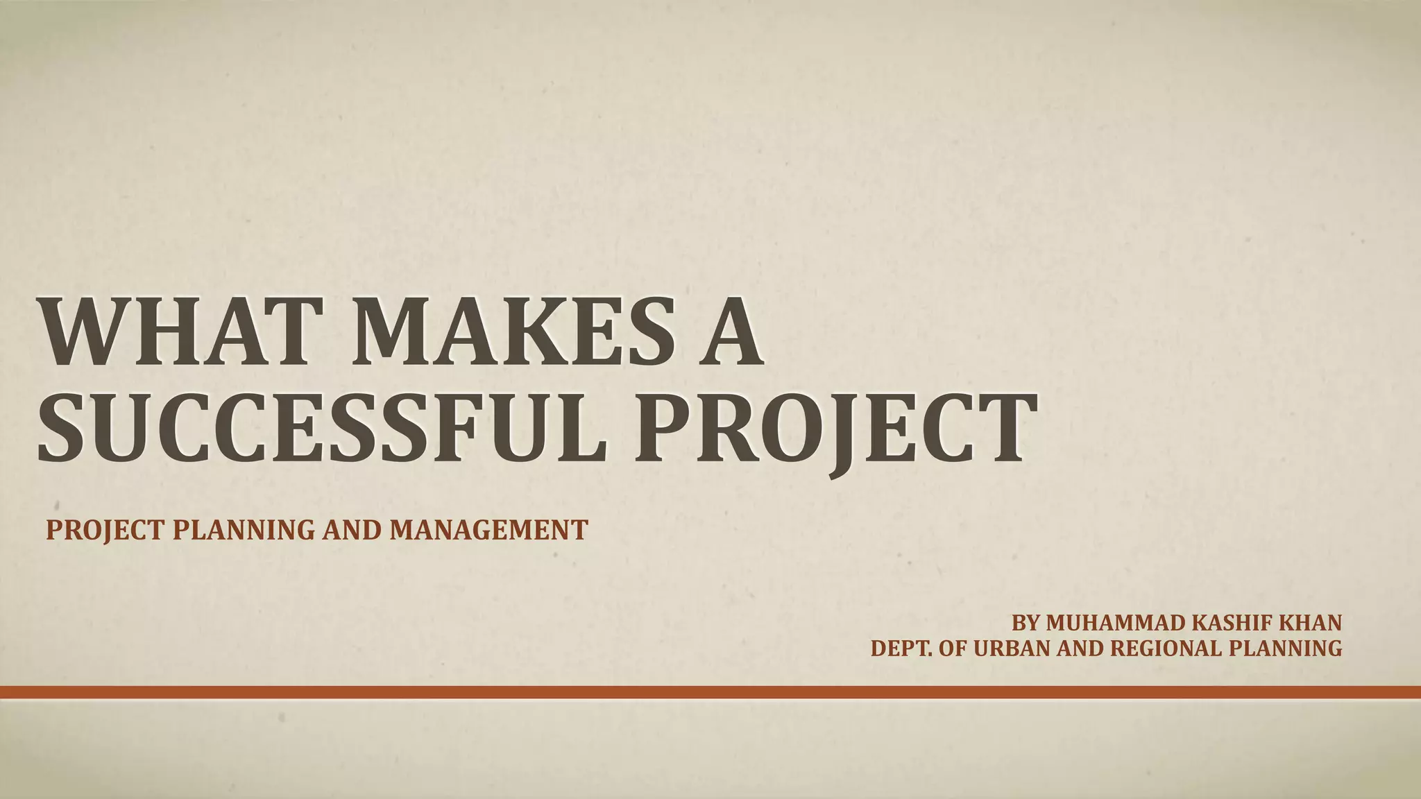 A successful project meets requirements, is delivered on schedule and budget, and provides expected business value. Key factors for success are clear goals, comprehensive planning, quality criteria definition, executive support, careful implementation, realistic estimates, risk analysis, change management, stakeholder involvement, and a skilled project manager. Factors contributing to failure include lack of input, incomplete requirements, changing requirements, insufficient support, planning or resources, and unrealistic expectations.