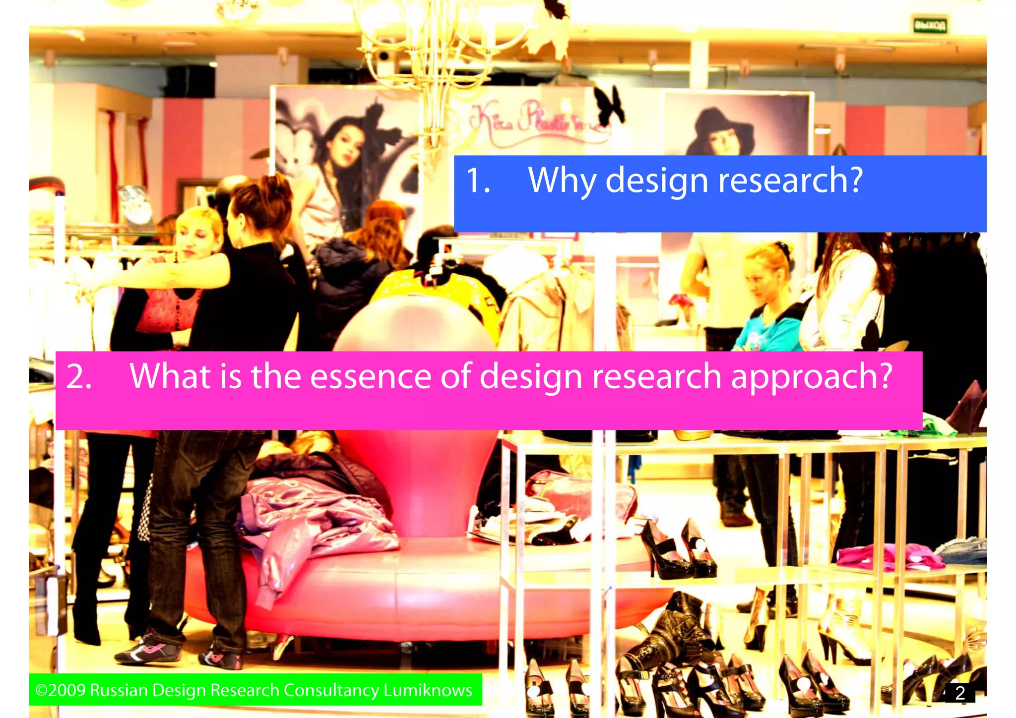 The document discusses the importance of design research for marketers, emphasizing the need to deeply understand customer values, needs, and experiences in order to create successful products. It highlights that traditional market research often fails, with a high percentage of new products failing despite thorough analysis, and stresses the significance of capturing customer attention in a saturated market. Additionally, it outlines the challenges companies face in synthesizing customer needs to develop meaningful products and advocates for a consumer-driven strategy in design.