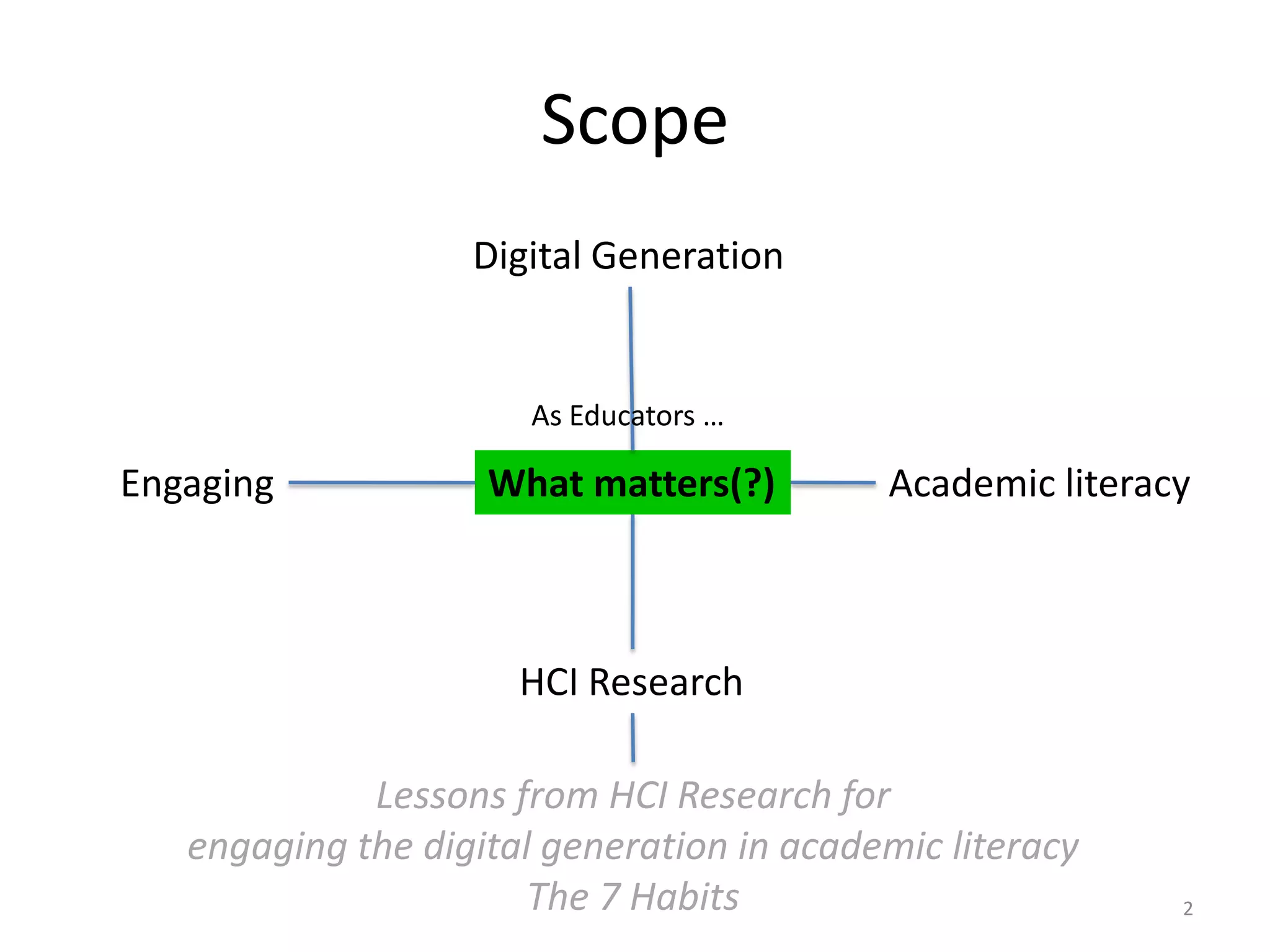 This document discusses academic literacy and how to engage the digital generation in academic literacy. It provides definitions of academic literacy and explains why it is important. It then discusses the characteristics of the digital generation and how they differ from previous generations in how they learn, communicate, and search for information using technologies like Google. Some research studies are summarized that explore how the digital generation searches for information online and what challenges those with low literacy may face. The document advocates for rethinking how universities teach to better engage the digital generation.