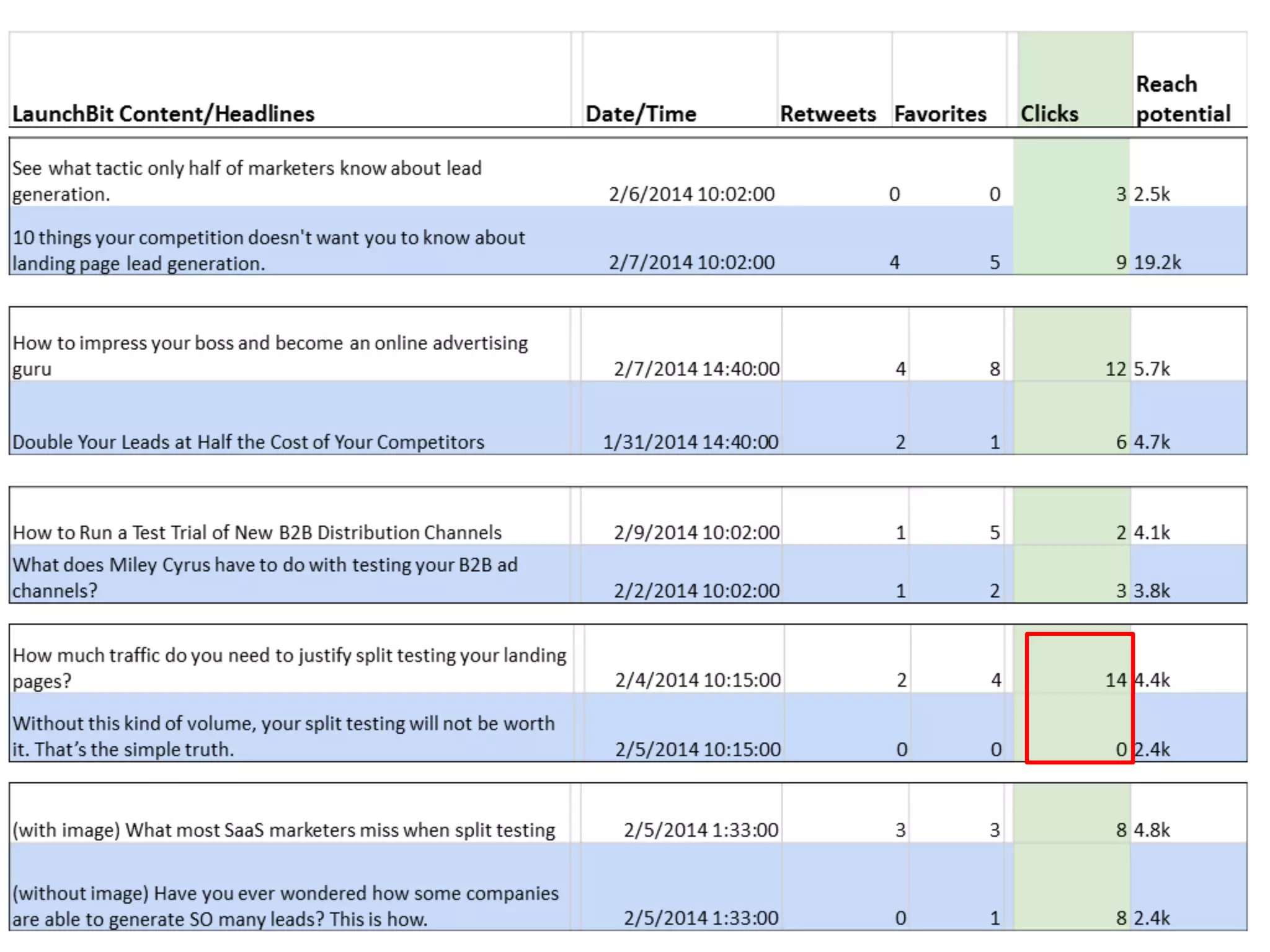 2) Conducting an experiment on Twitter to split test headlines by tweeting two different headlines at the same time to compare click-through rates.
