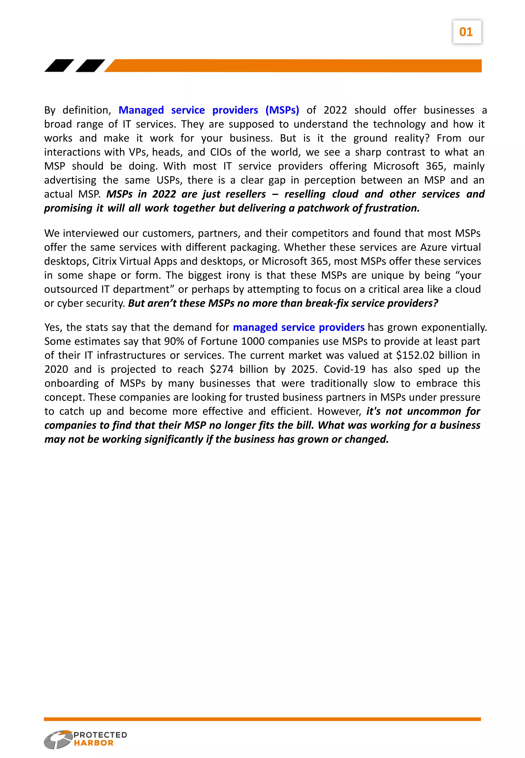 Managed Service Providers (MSPs) in 2022 are often seen as mere resellers of IT services, lacking the full range of offerings and support businesses need. Although the demand for MSPs has significantly increased, many provide similar services without the expected value, resulting in a disconnect between perception and reality. Companies are encouraged to choose MSPS that act as true partners, focusing on proactive support and aligning technology with business needs.