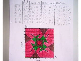 This document explains how to determine the shape that your name makes by writing it vertically and assigning numbers to each letter, then plotting the corresponding number pairs on a graph and connecting the points to reveal the shape. The reader is instructed to write their name vertically, with each letter having a partner below it, then to look up the number for each letter and write the corresponding pairs. These number pairs are then plotted on a graph and connected to show the shape that the name makes.