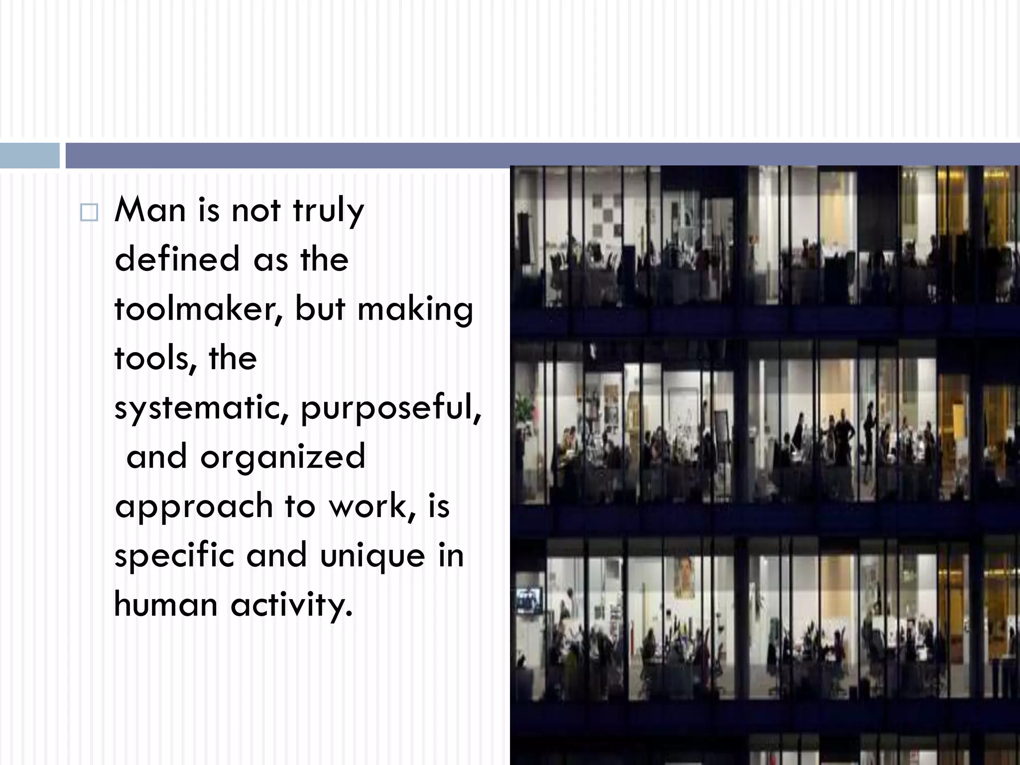 - Elton Mayo's later focus on human relations and how people work together.
